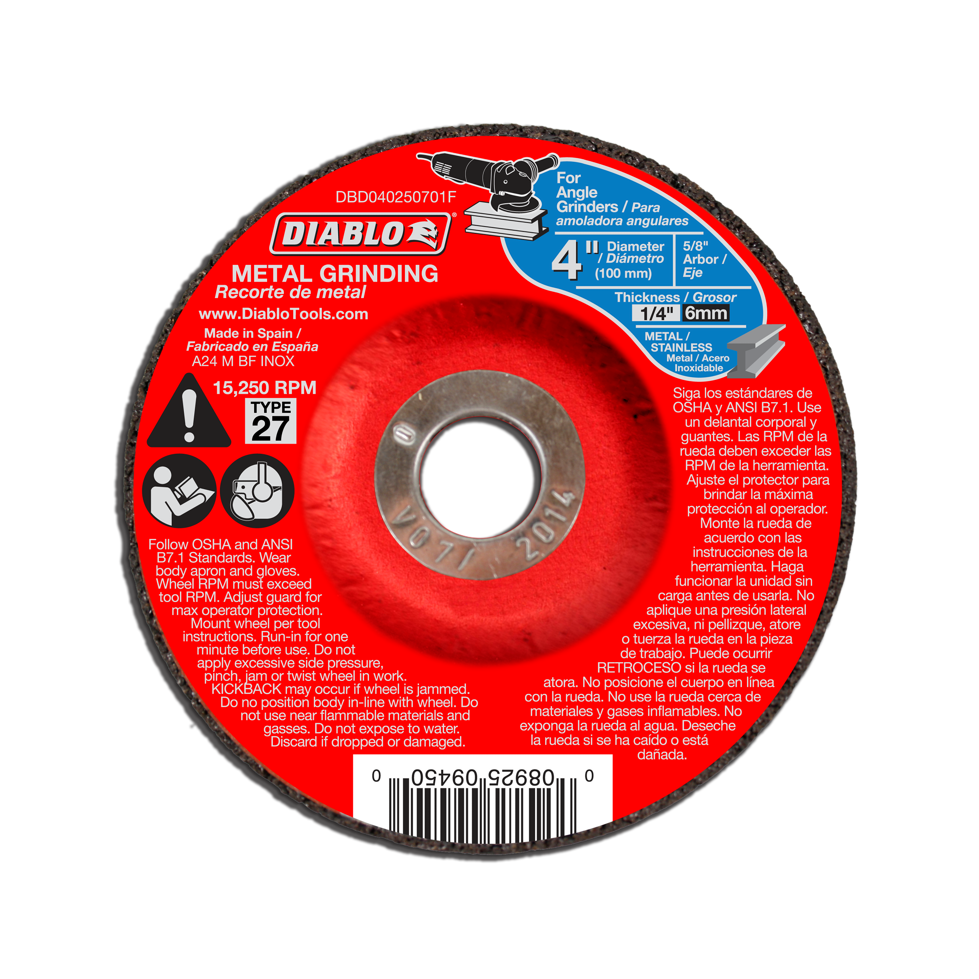 Diablo DBD040250701F 4" Type 27 Metal Grinding Disc