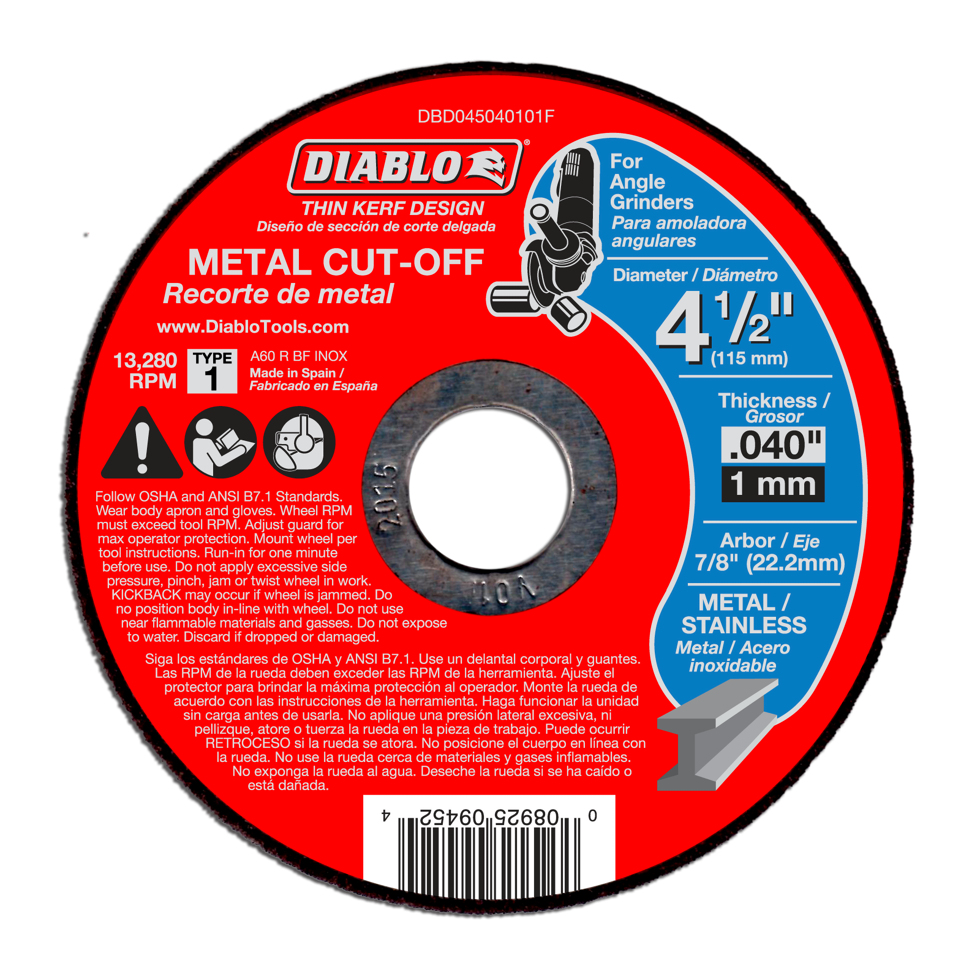 Elevate your cutting experience with the Diablo DBD045040125F 4-1/2" Thin Kerf Metal Cut-Off Discs. Designed for professionals and DIY enthusiasts alike, these premium metal cut-off discs are engineered to deliver superior performance and excellent productivity in every project.