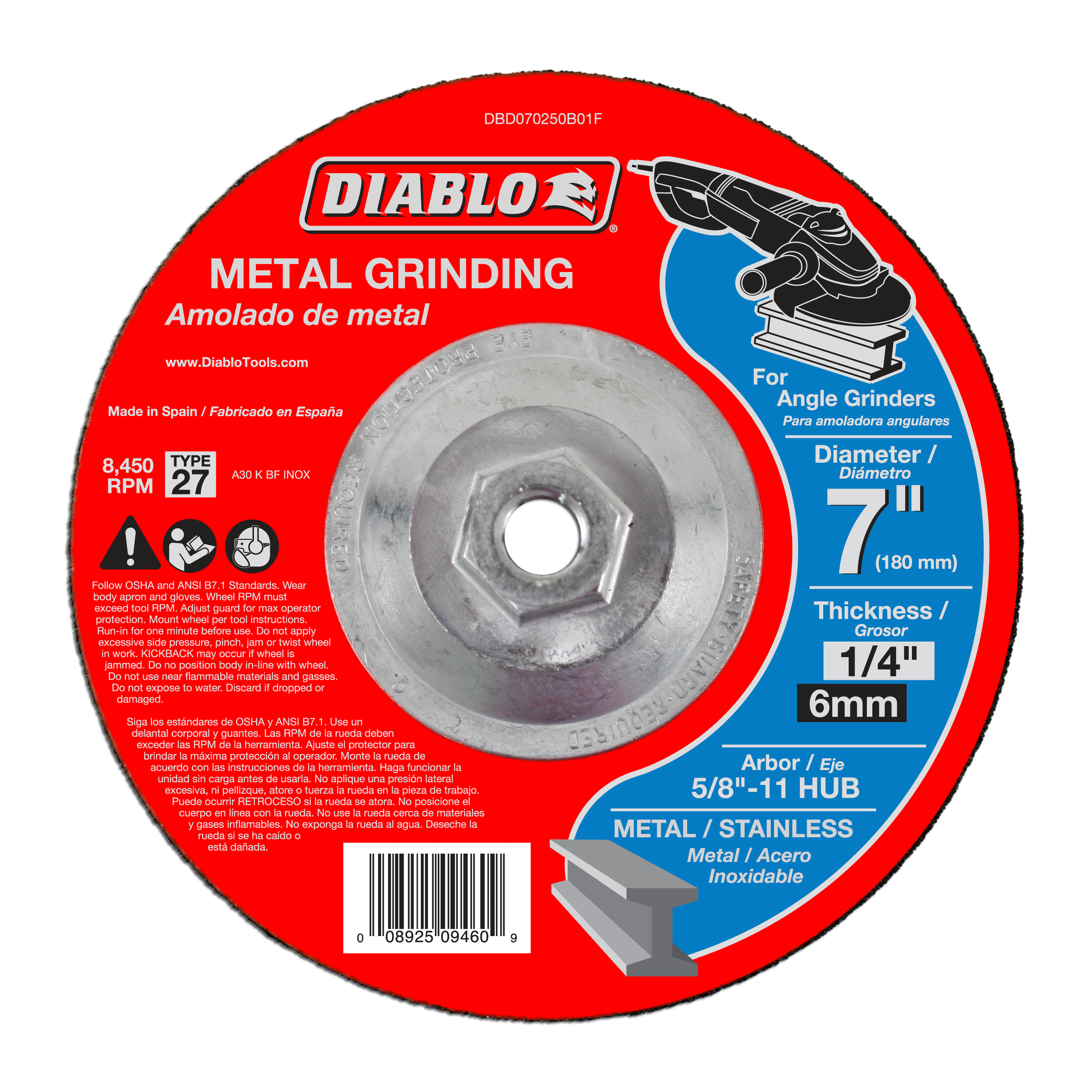 Upgrade your toolkit with the Diablo DBD070250B01F grinding disc and experience the difference in quality and performance. Get ready to tackle tough grinding tasks with confidence and precision!