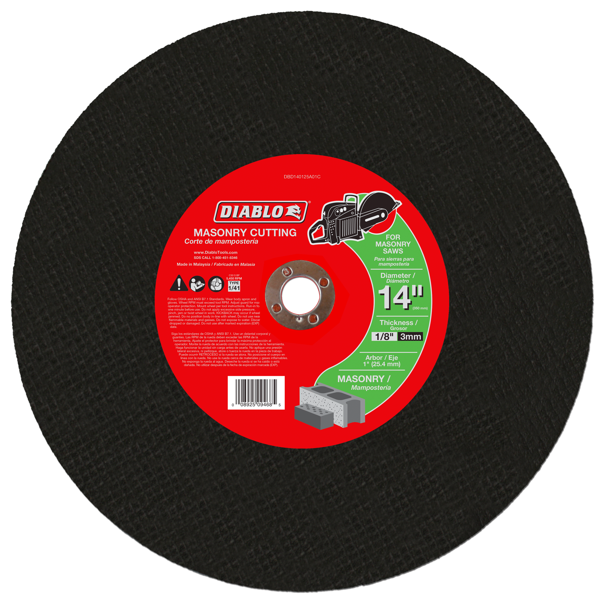 Diablo DBD140125A01C 14" x 1/8" x 1" High Speed Masonry Cut-Off Disc