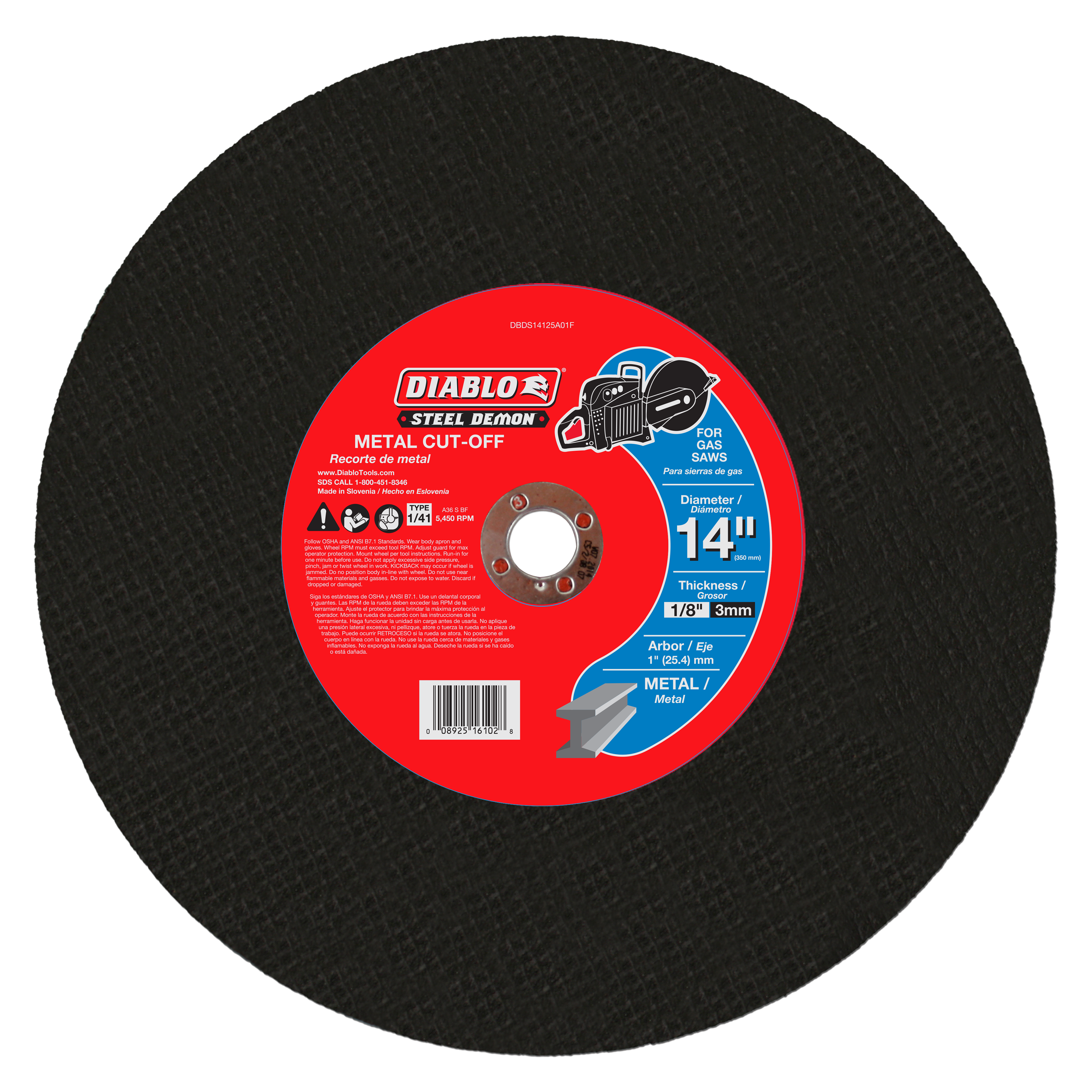 Diablo DBDS14125A01F 14" 1" Steel Demon™ High Speed Metal Cut-Off Disc