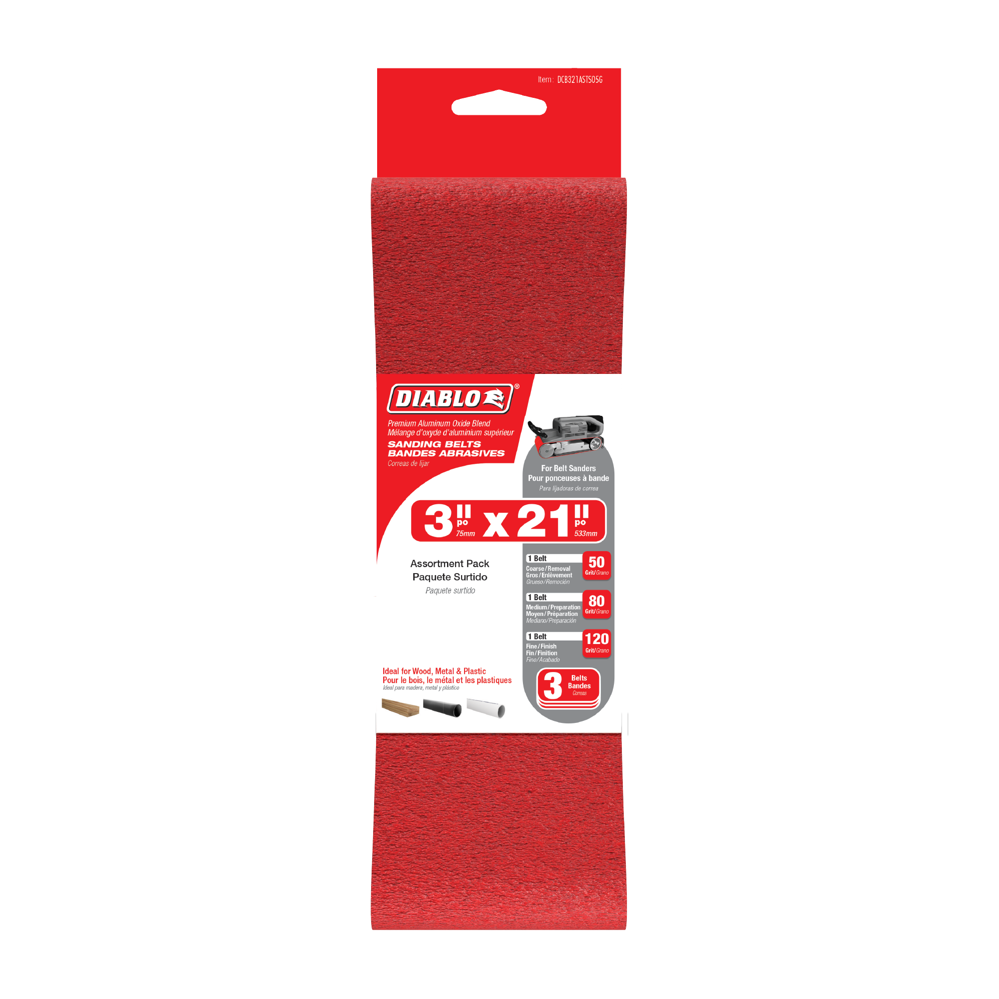 Diablo DCB321ASTS05G 3" x 21" Assorted Sanding Belts (5-Piece)