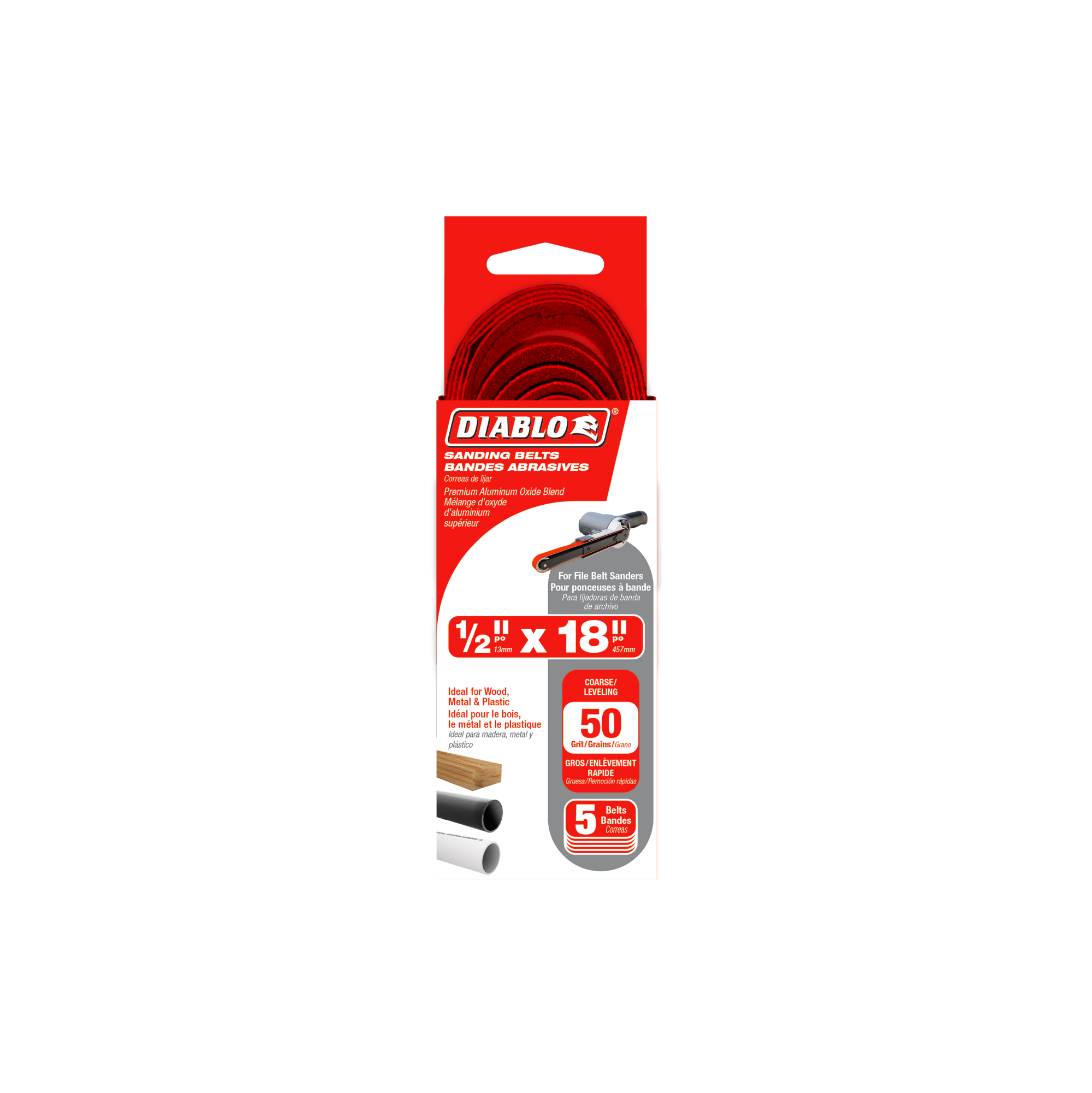 Diablo DCB518050S05G Diablo ½" x 18" 50-Grit (Coarse) Detail File Sanding Belt (5-Pieces)