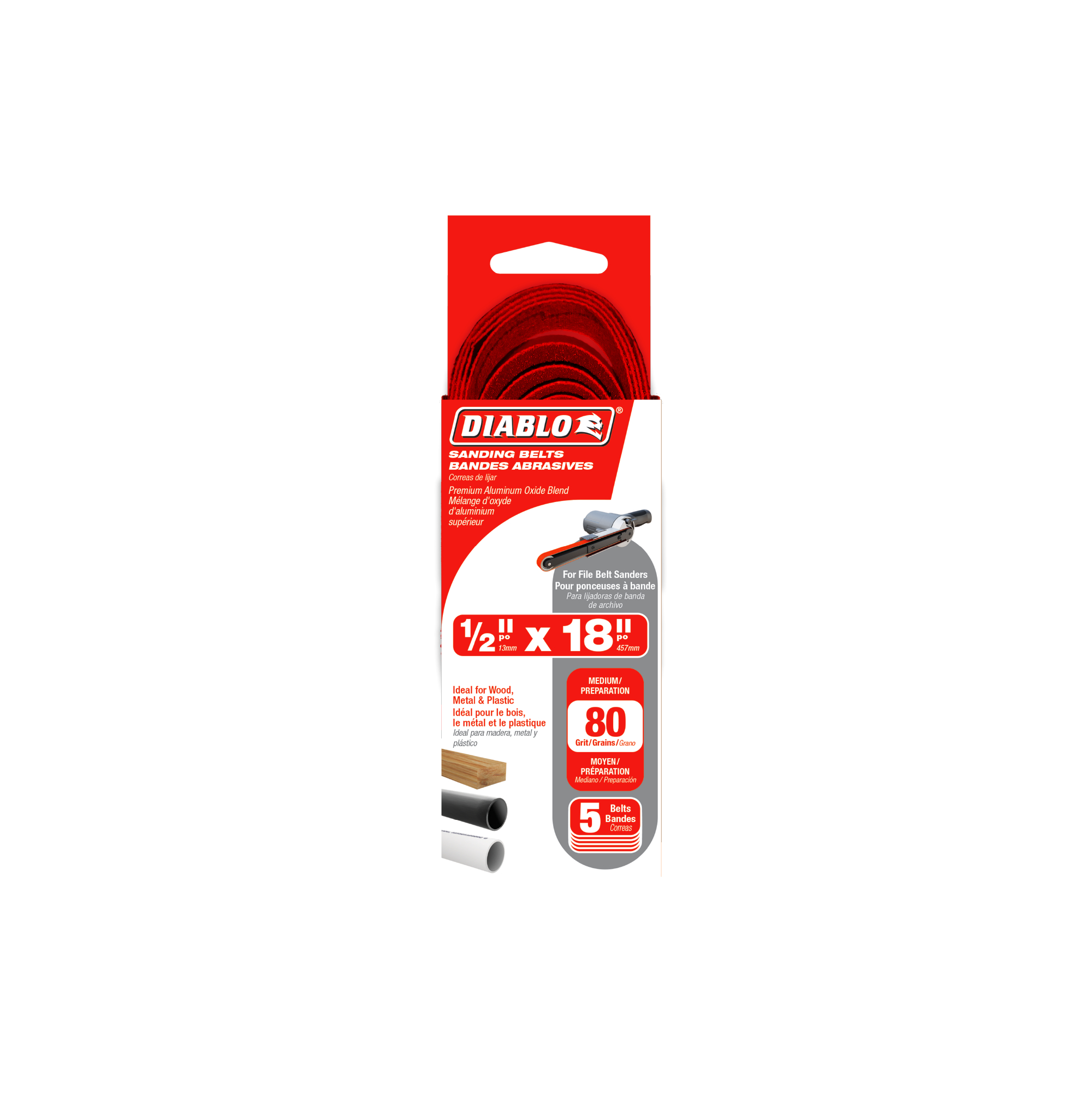 Diablo DCB518080S05G Diablo ½" x 18" 80-Grit (Medium) Detail File Sanding Belt (5-Pieces)