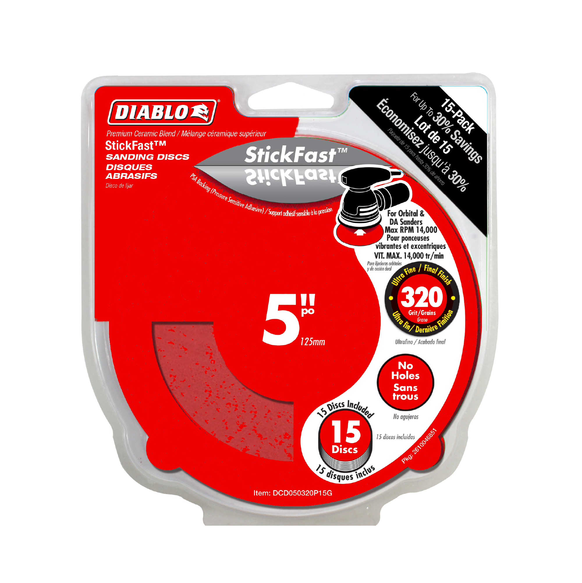 Diablo DCD050320P15G 5" 320-Grit StickFast™ ROS Sanding Discs (15-Pack)
