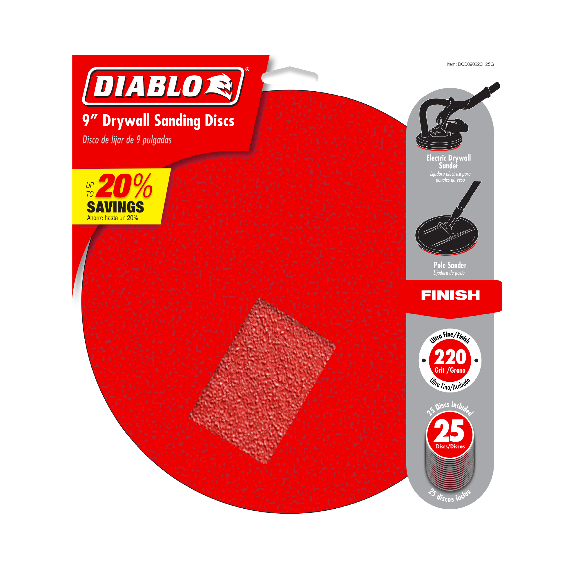 Diablo DCD090220H25G 9" 220 Grit (Ultra Fine) Drywall ROS Hook & Lock™ Discs (25-Pack)