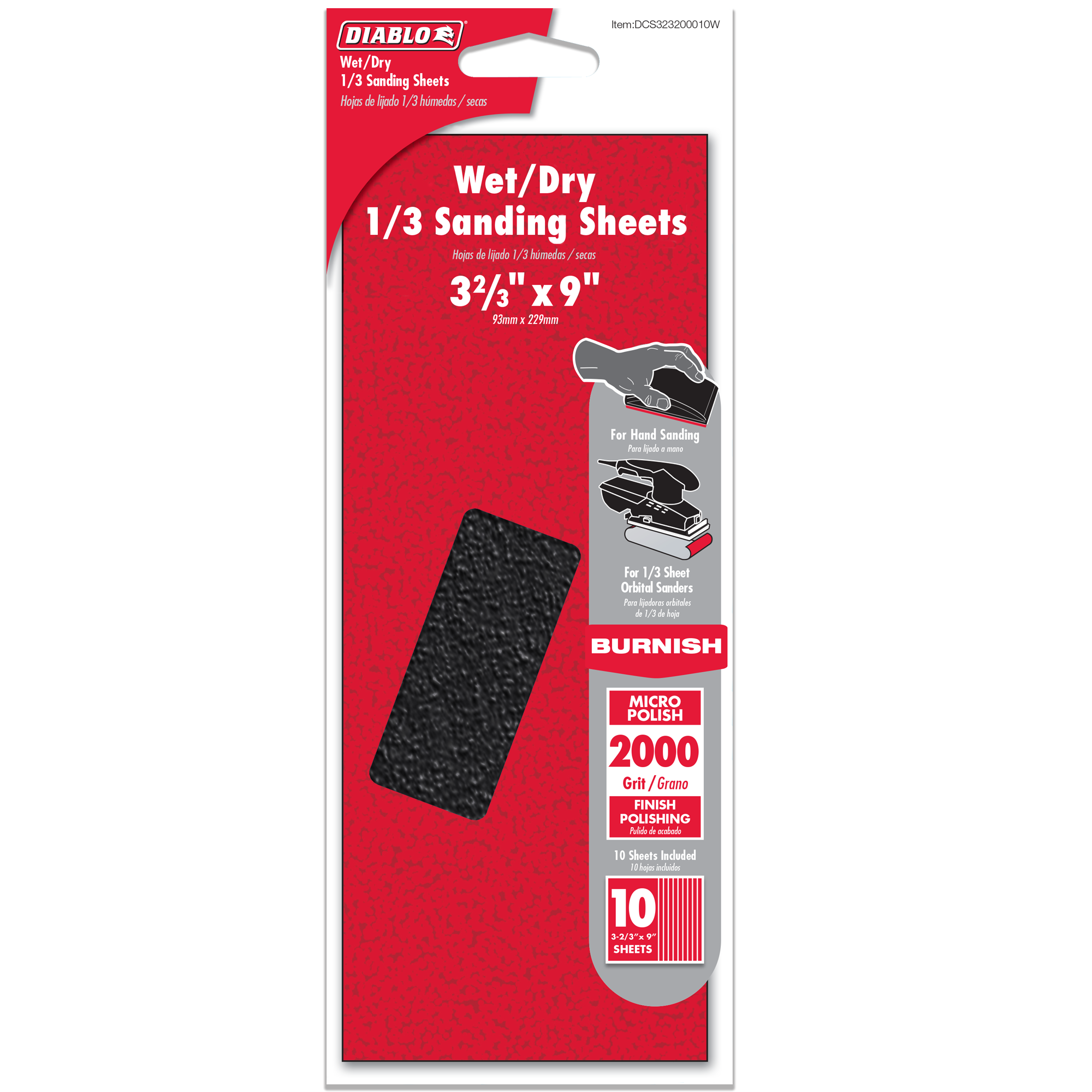 Diablo DCS323200010W 1/3 Sheet 2000-Grit Wet/Dry Sanding Sheets (10-Piece)