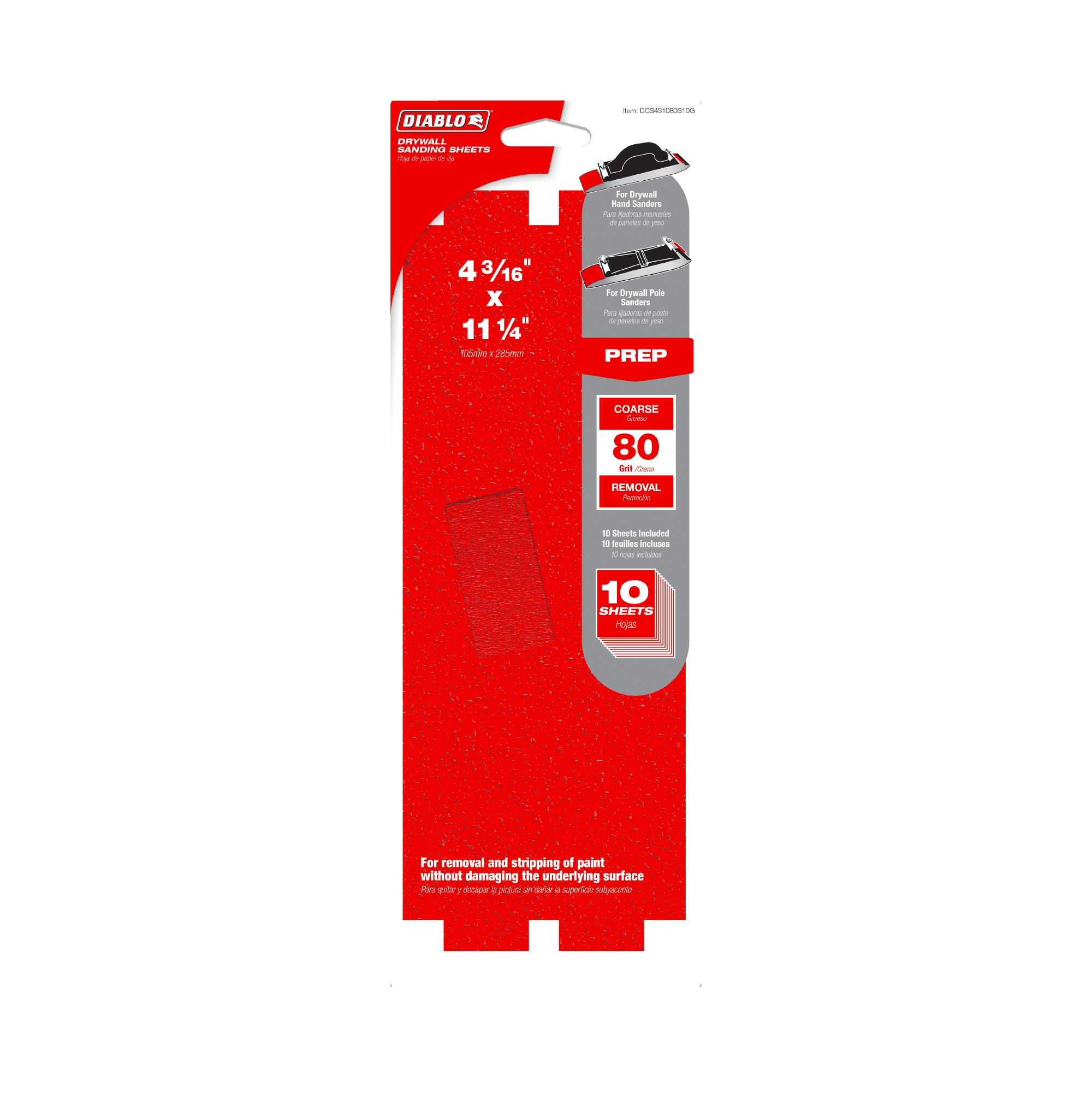 Enhance your drywall finishing projects with the Diablo DCS431080S10G 4-3/16" x 11-1/4" 80-Grit Sanding Sheets. Crafted for professionals and DIY enthusiasts alike, this 10-piece set ensures smooth, consistent results every time you sand. Engineered with advanced abrasive technology, these sanding sheets offer superior durability and efficient material removal, making your sanding tasks faster and less labor-intensive.