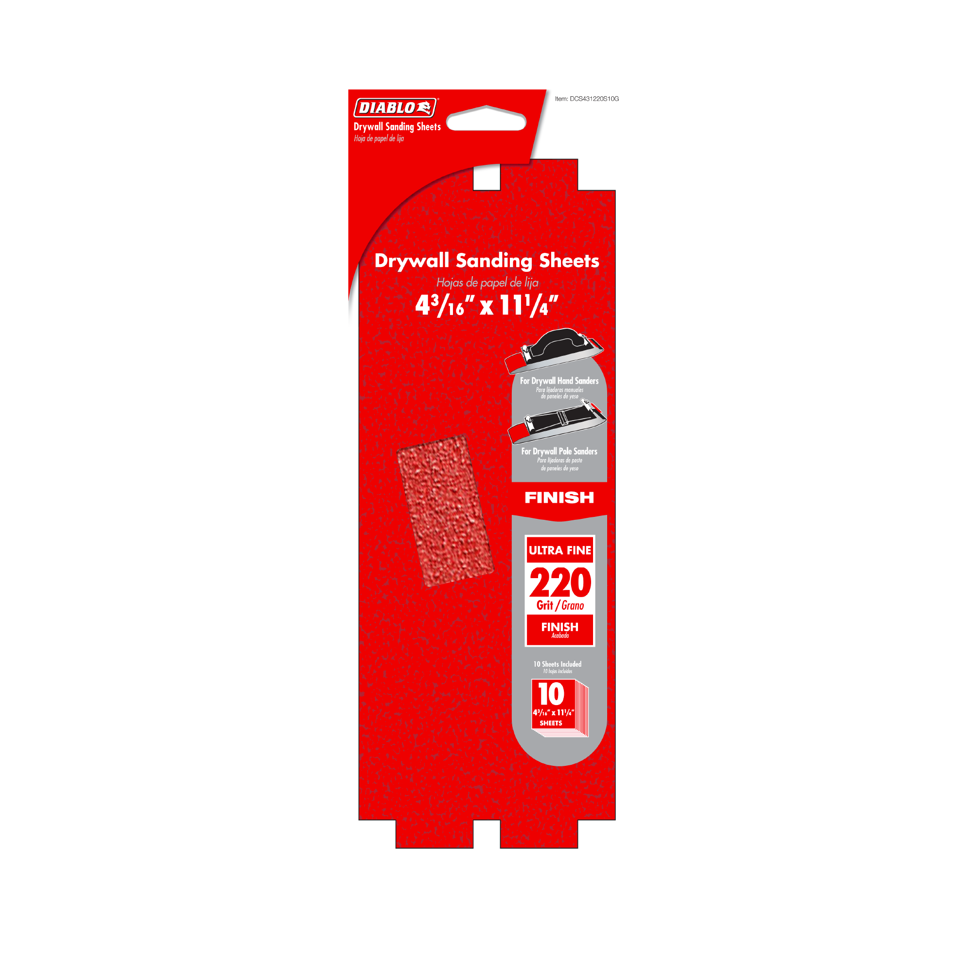 Achieve a perfectly smooth finish with the Diablo DCS431220S10G 4-3/16" x 11-1/4" 220-Grit Sanding Sheets, a 10-piece set crafted specifically for drywall professionals and enthusiasts alike. These sanding sheets feature a fine 220-grit abrasive that excels at smoothing drywall surfaces, minimizing dust, and reducing clogging for extended use and consistent performance.