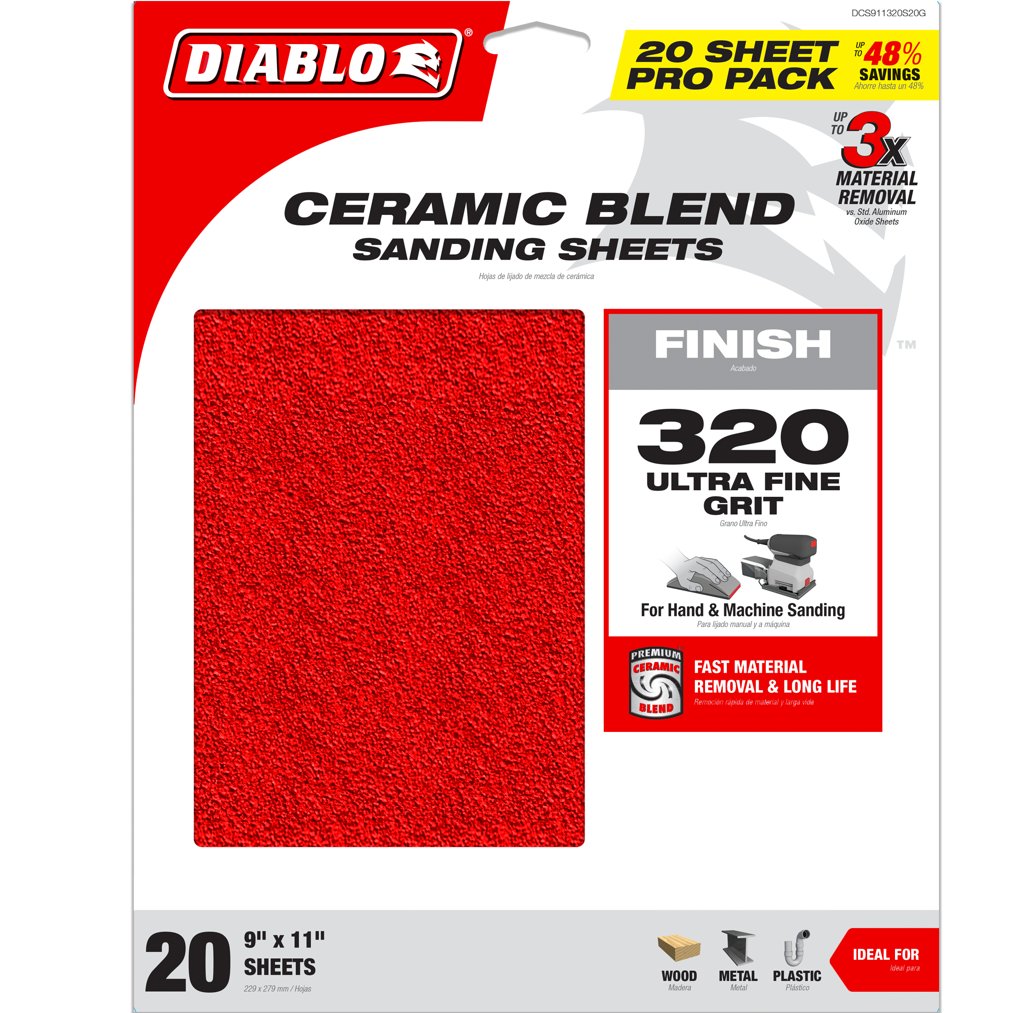 Diablo DCS911320S20G 9" x 11" 320-Grit Sanding Sheet (20-Pack)