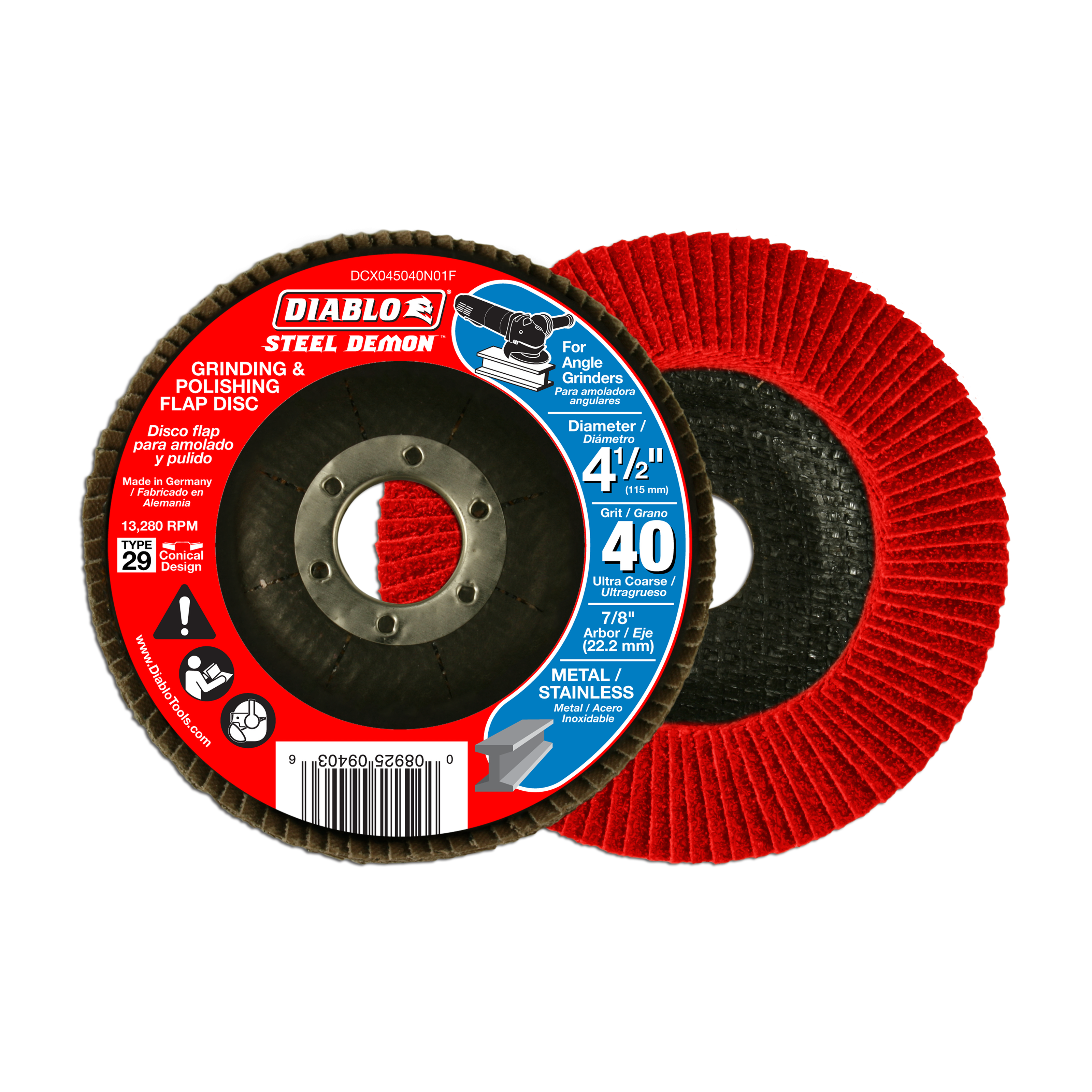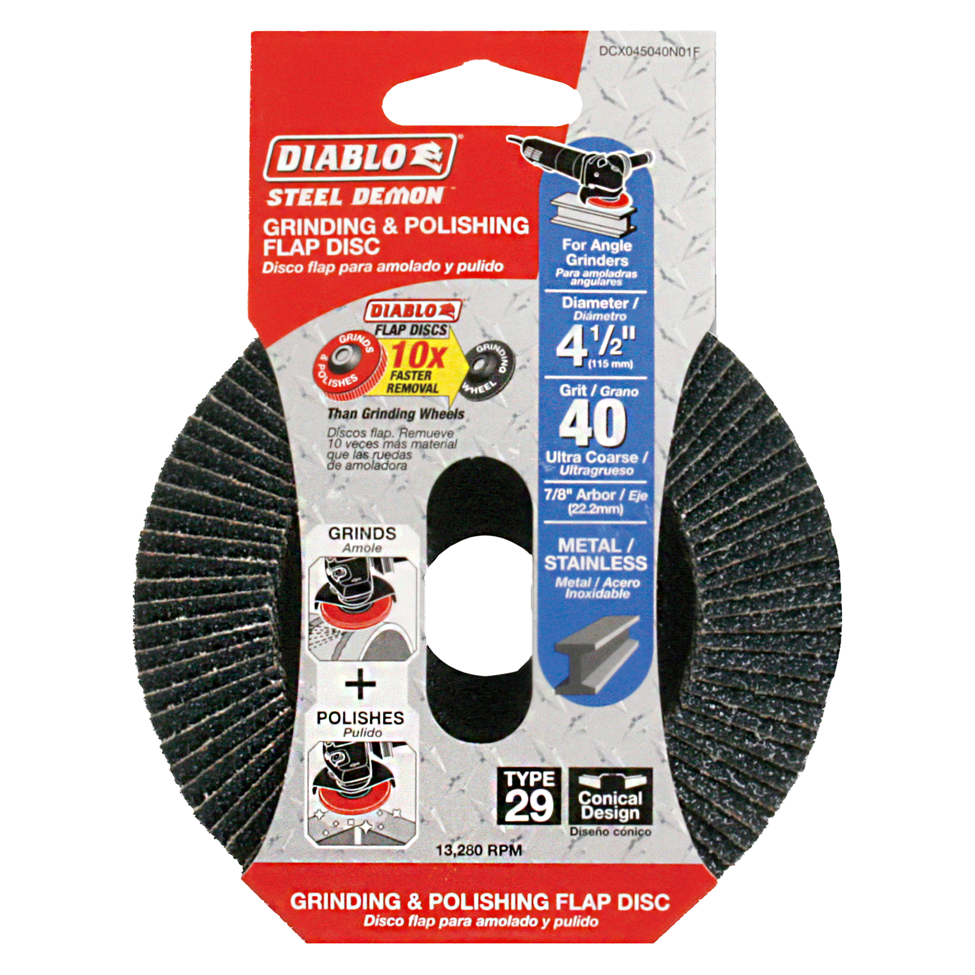 Diablo DCX045040N01F 4-1/2" Steel Demon™ Flap Disc 40 Grit - Type 29