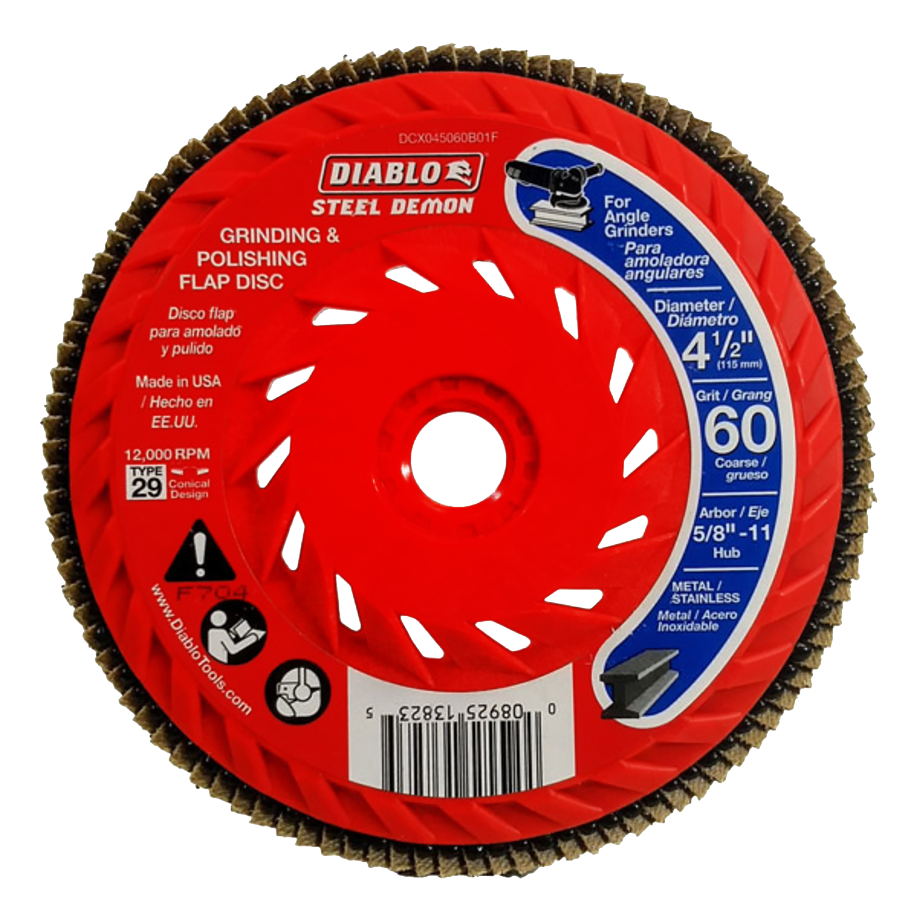 Introducing the Diablo DCX045060B01F 4-1/2" 60-Grit Steel Demon™ Flap Disc, the ultimate tool for metalworking enthusiasts and professionals alike. Designed for those who demand quality and performance, this flap disc revolutionizes your grinding experience.
