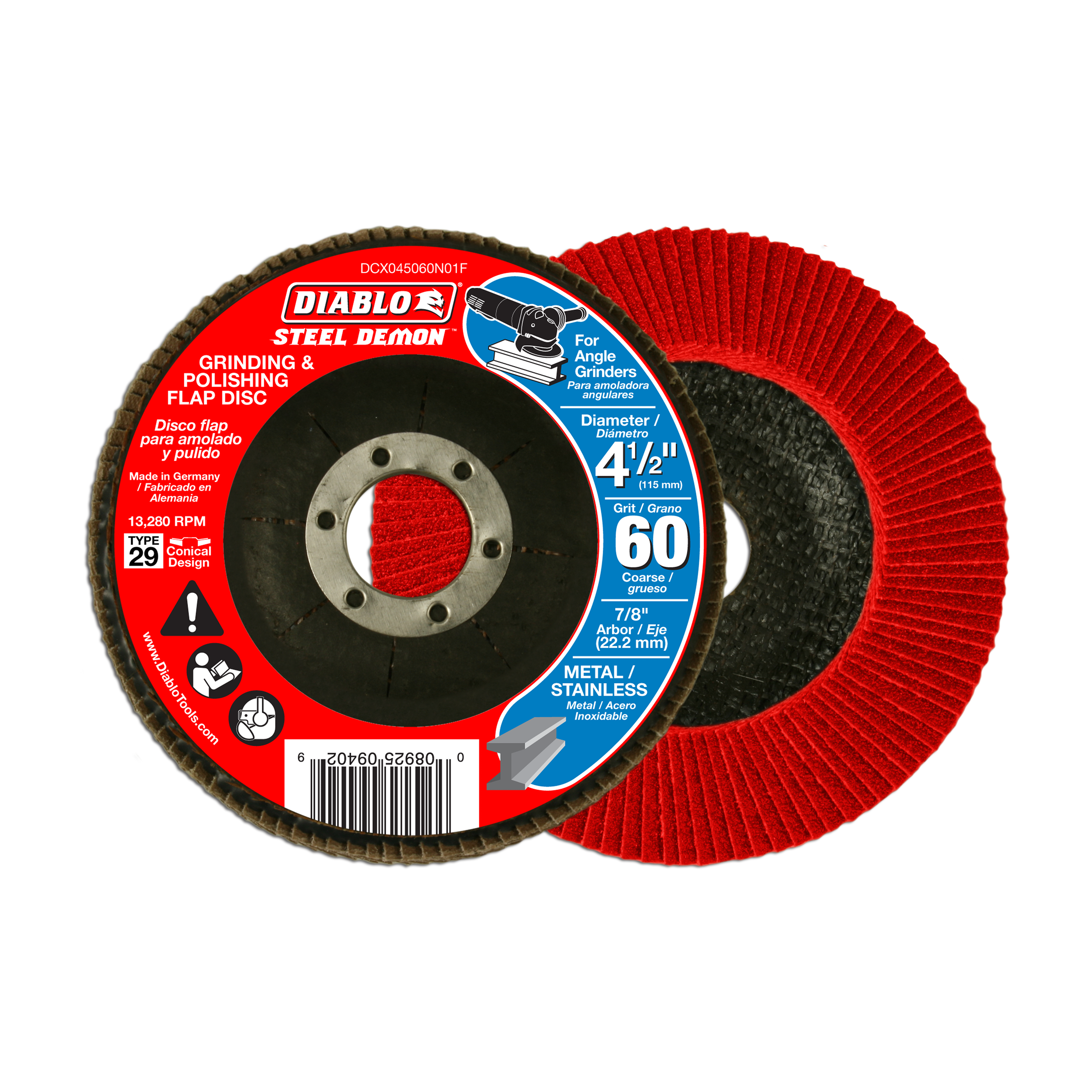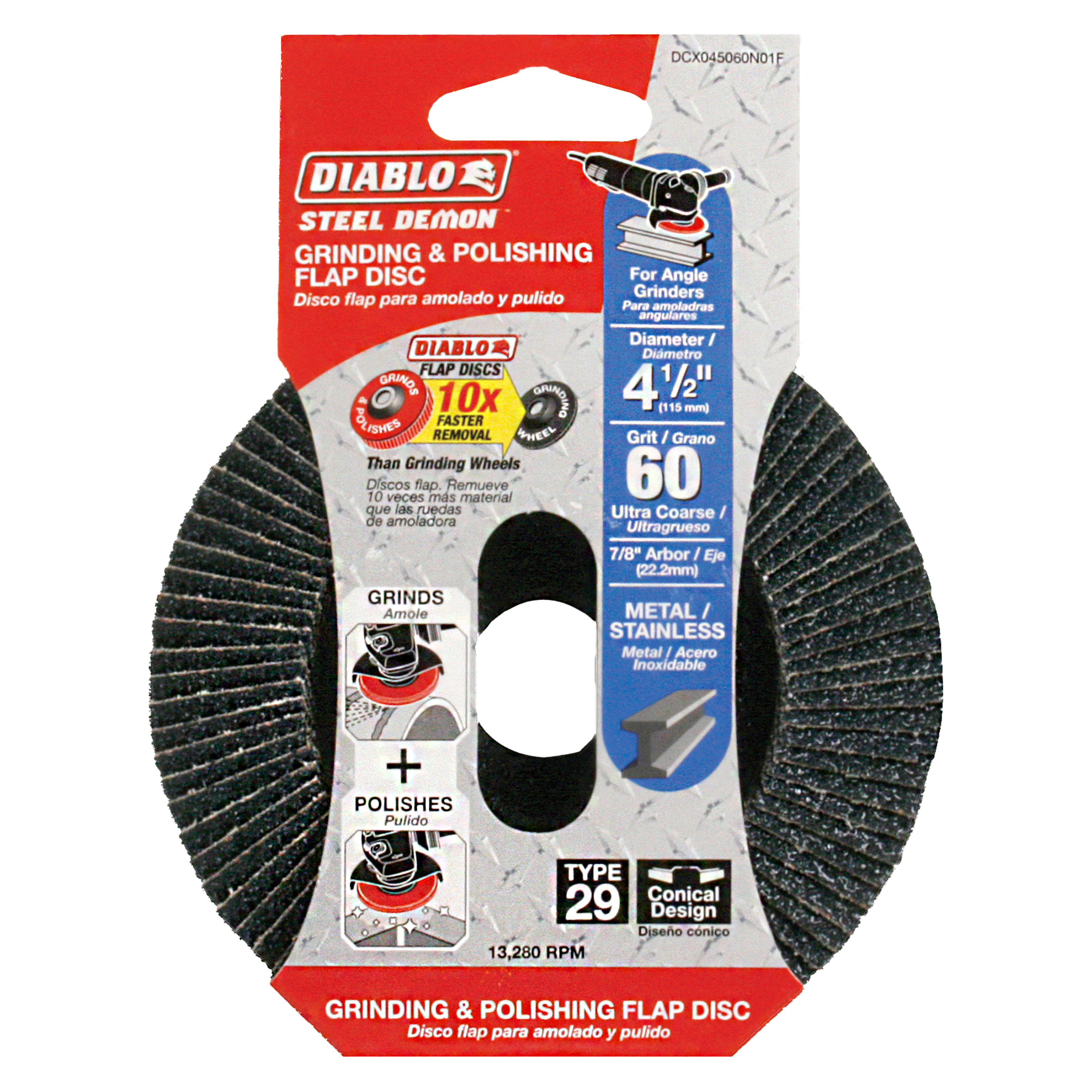 Diablo DCX045060N01F 4-1/2" 60-Grit Type 29 Steel Demon™ Flap Disc for Metal