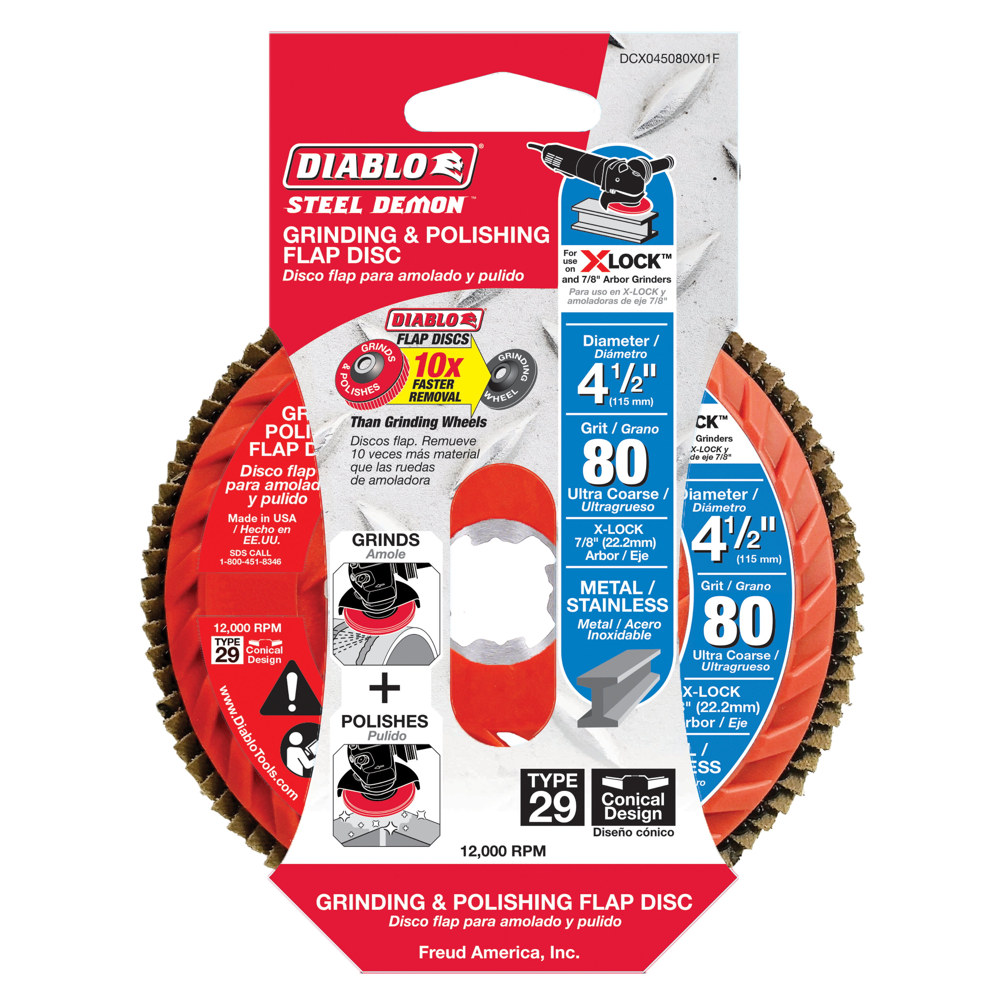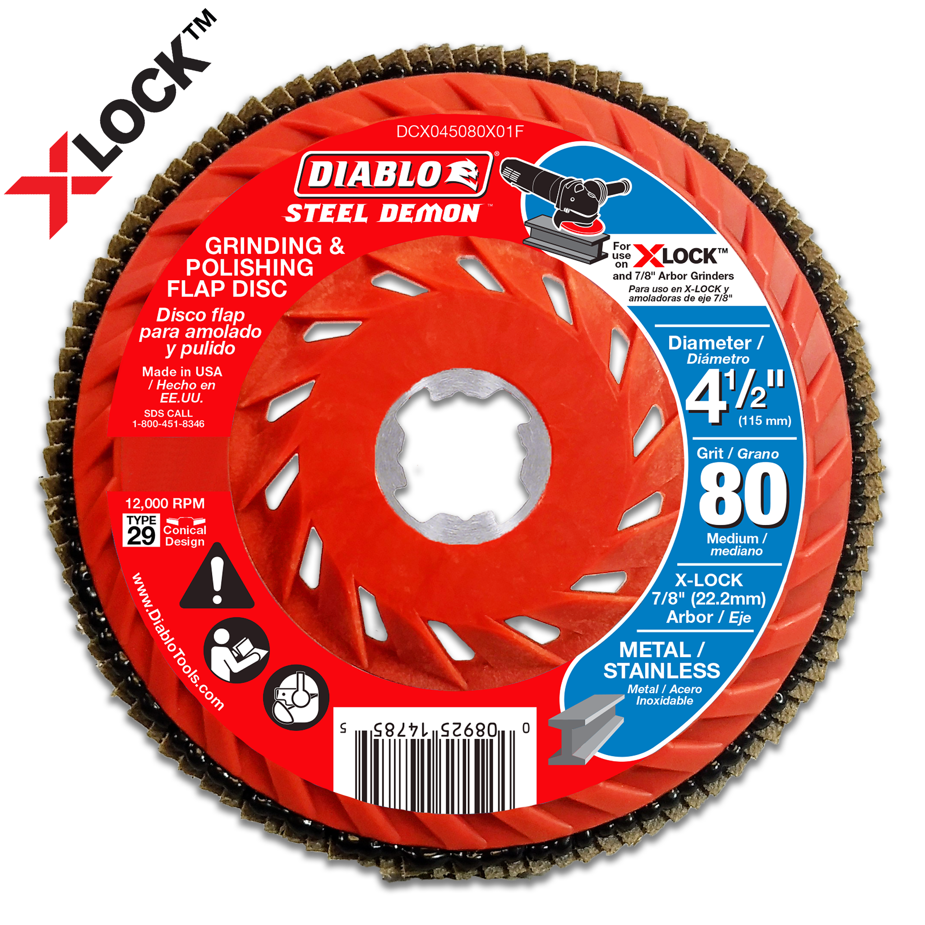 Diablo DCX045080X01F 4-1/2" 80-Grit X-LOCK Steel Demon™ Flap Disc for Metal