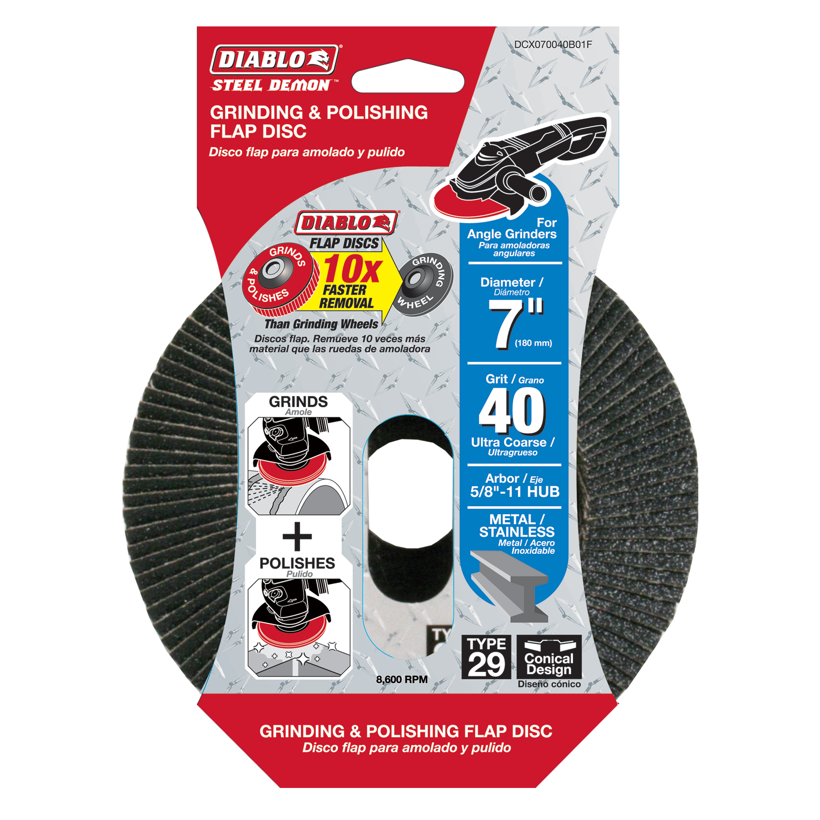Diablo DCX070040B01F 7" 40-Grit Steel Demon™ Flap Disc for Metal