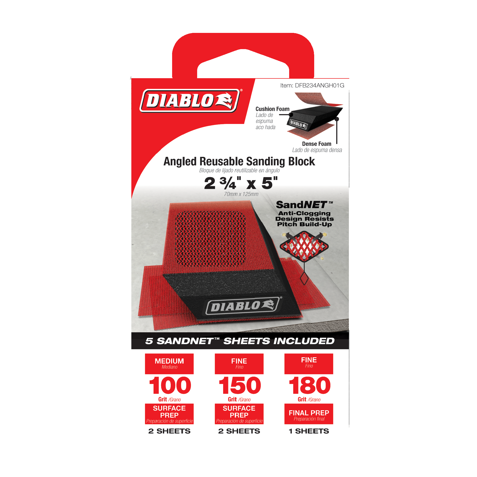 Introducing the Diablo DFB234ANGH01G 2-3/4" x 5" Reusable Angled Hand Sanding Block, the ultimate tool for achieving a flawless finish on both flat and contoured surfaces. Designed for professionals and DIY enthusiasts alike, this versatile sanding block is engineered to maximize your sanding performance.