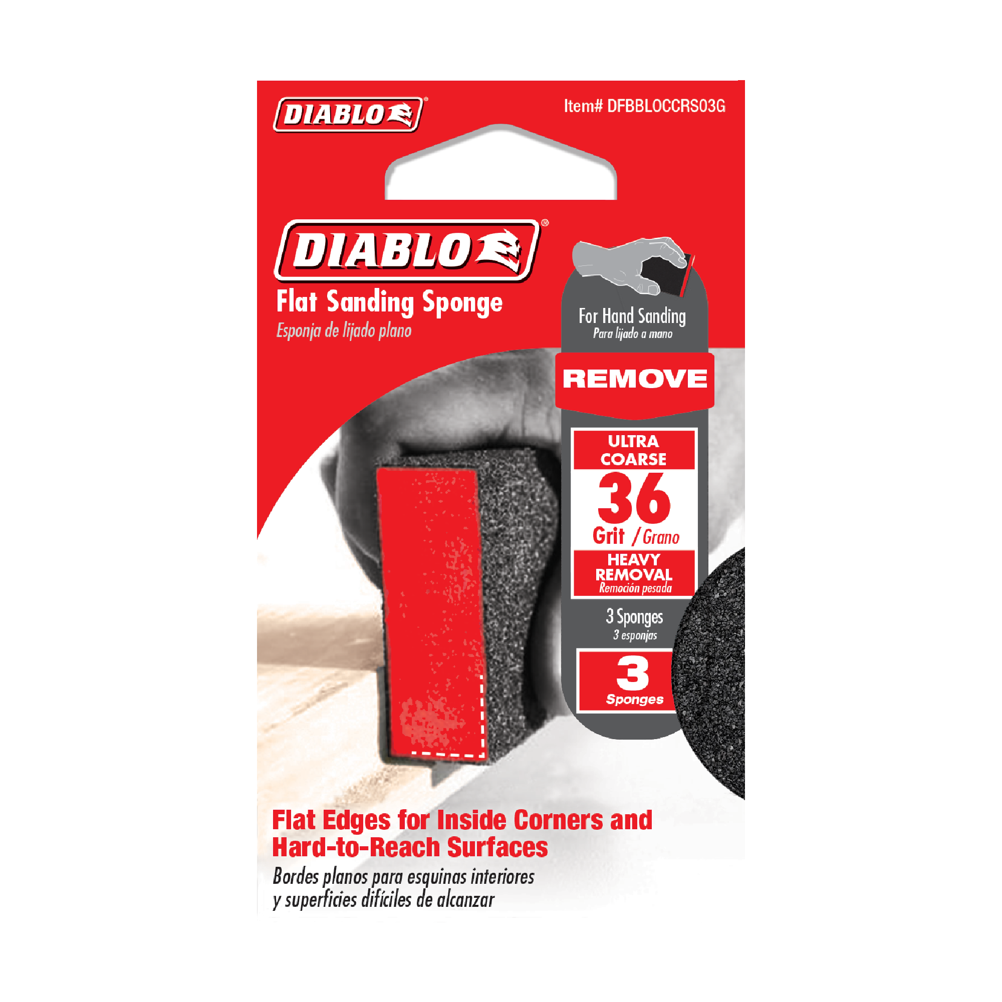 Transform your sanding projects with the Diablo DFBBLOCCRS03G Flat 36-Grit (Ultra Coarse) Sanding Sponge, a must-have for anyone seeking fast and efficient material removal. This 3-piece set features ultra-coarse sanding sponges designed to tackle tough surfaces with ease, making it ideal for heavy-duty sanding tasks and rapid stock removal.