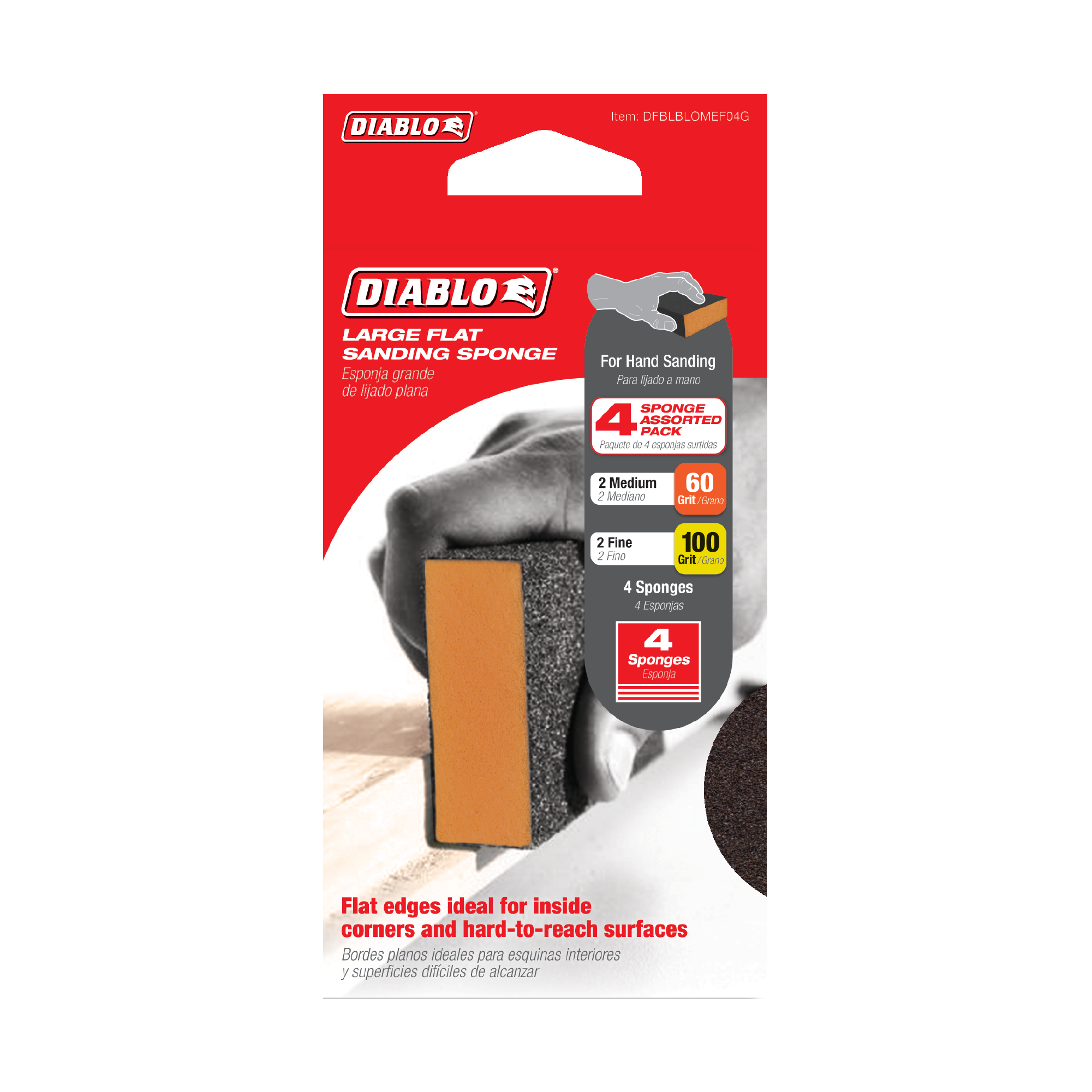 Experience the ultimate sanding solution with the Diablo DFBLBLOMEF04G 5" x 3" x 1" Assorted Large Flat Edge Sanding Sponges. This 4-pack of premium sanding sponges is designed to elevate your DIY projects and professional tasks alike.