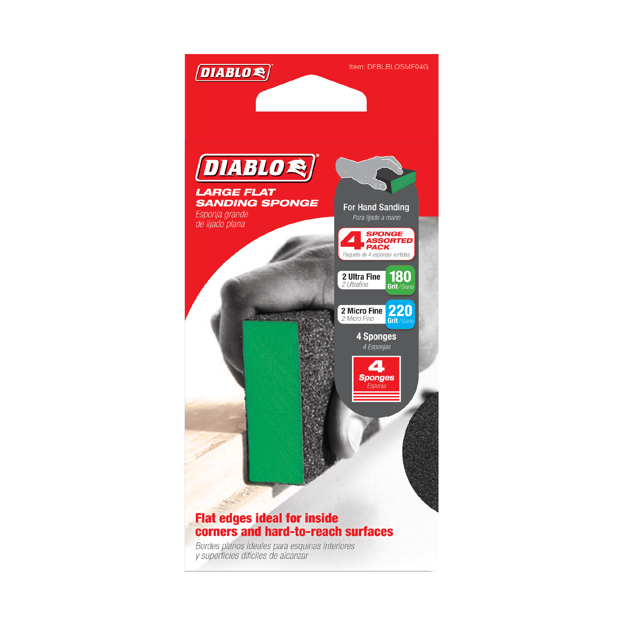Introducing the Diablo DFBLBLOSMF04G Assorted Large Flat Edge Sanding Sponges, your ultimate solution for superior sanding performance! This 4-piece set is designed for professionals and DIY enthusiasts alike, providing an innovative approach to hand-sanding that enhances productivity and efficiency.