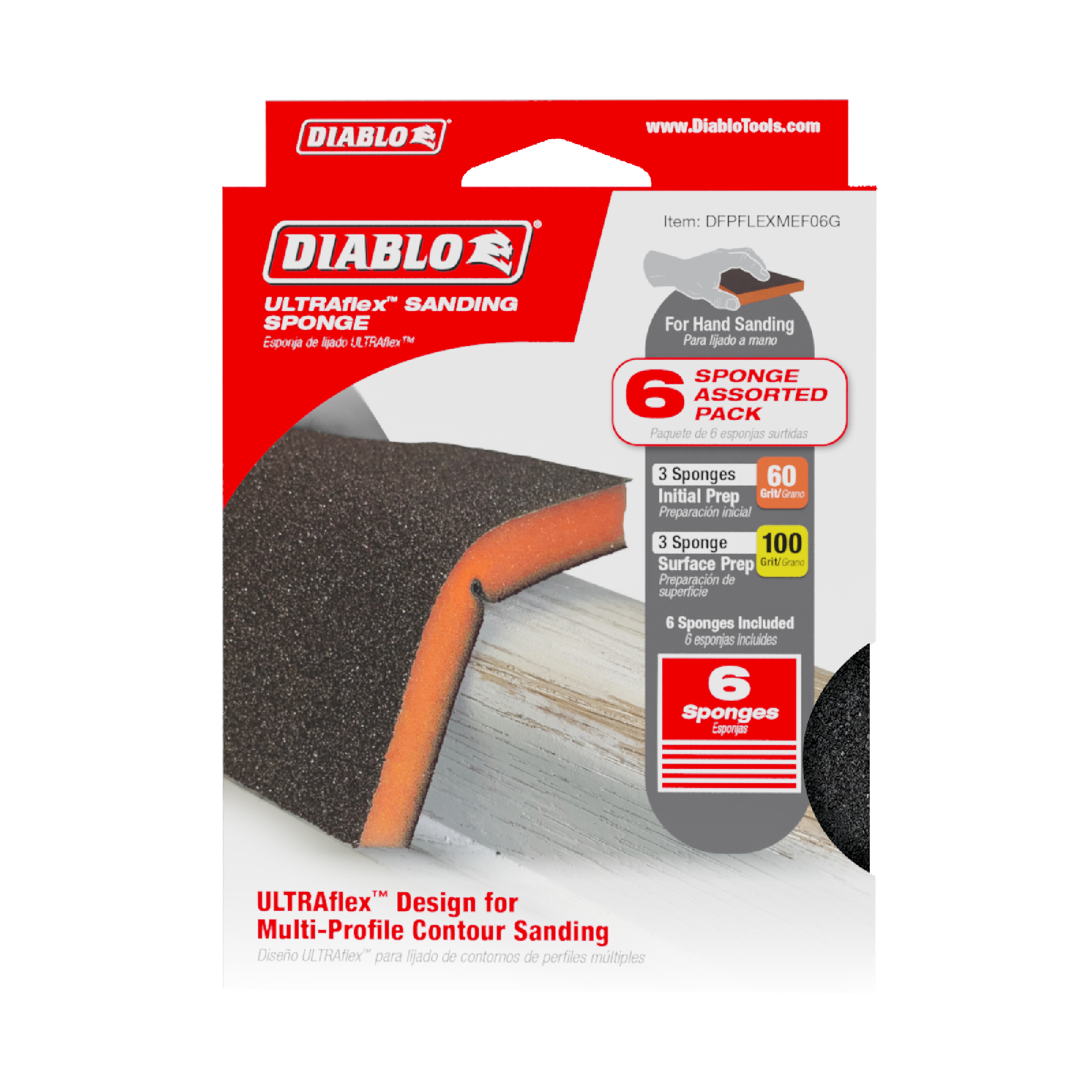 Upgrade your sanding toolkit with the Diablo ULTRAflex™ Sanding Sponges and experience the perfect balance of flexibility, durability, and efficiency for all your surface preparation needs.