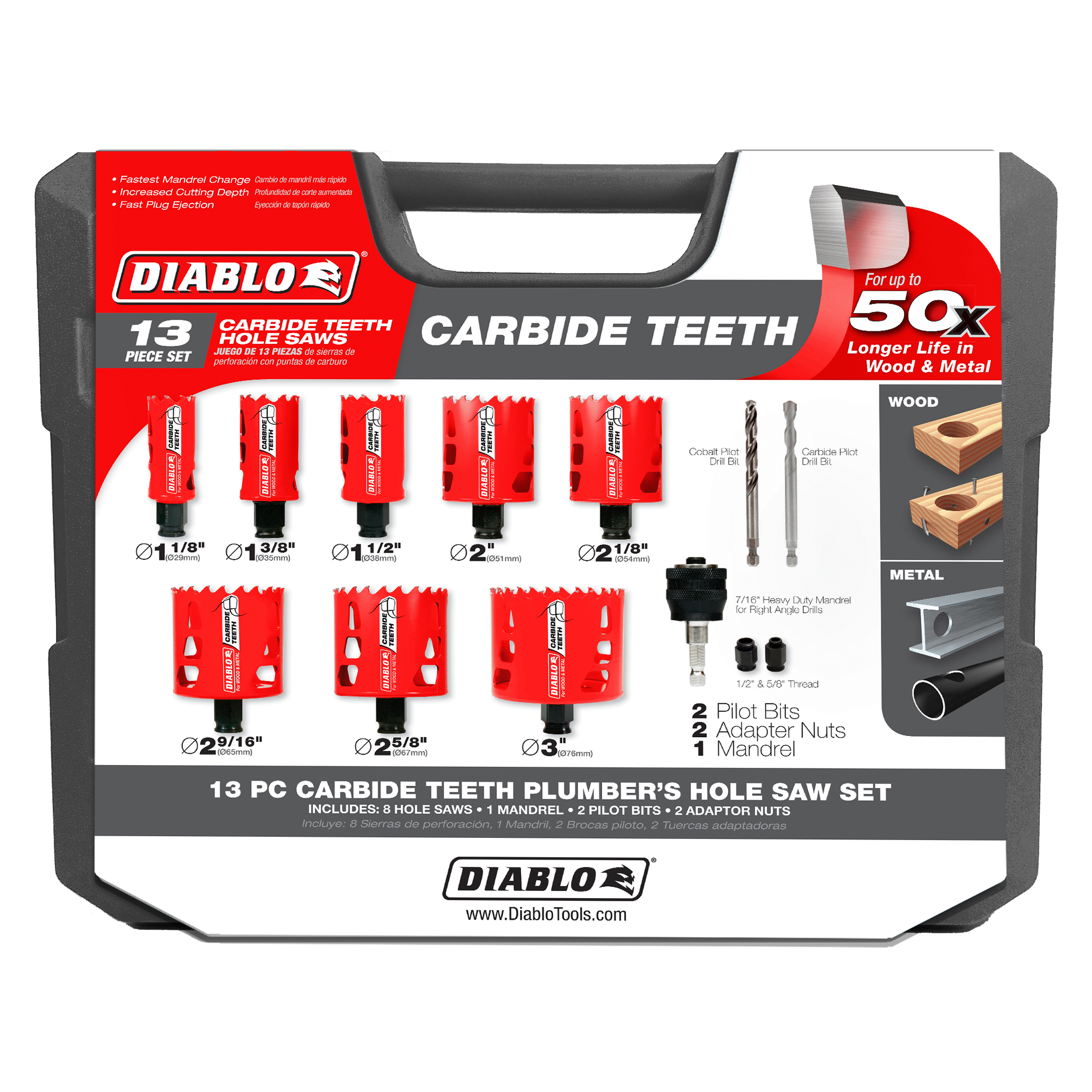 Upgrade your toolkit today with the Diablo DHS13SPLCT 13 pc Carbide Teeth Hole Saw Set and experience unmatched performance and efficiency in every plumbing job!