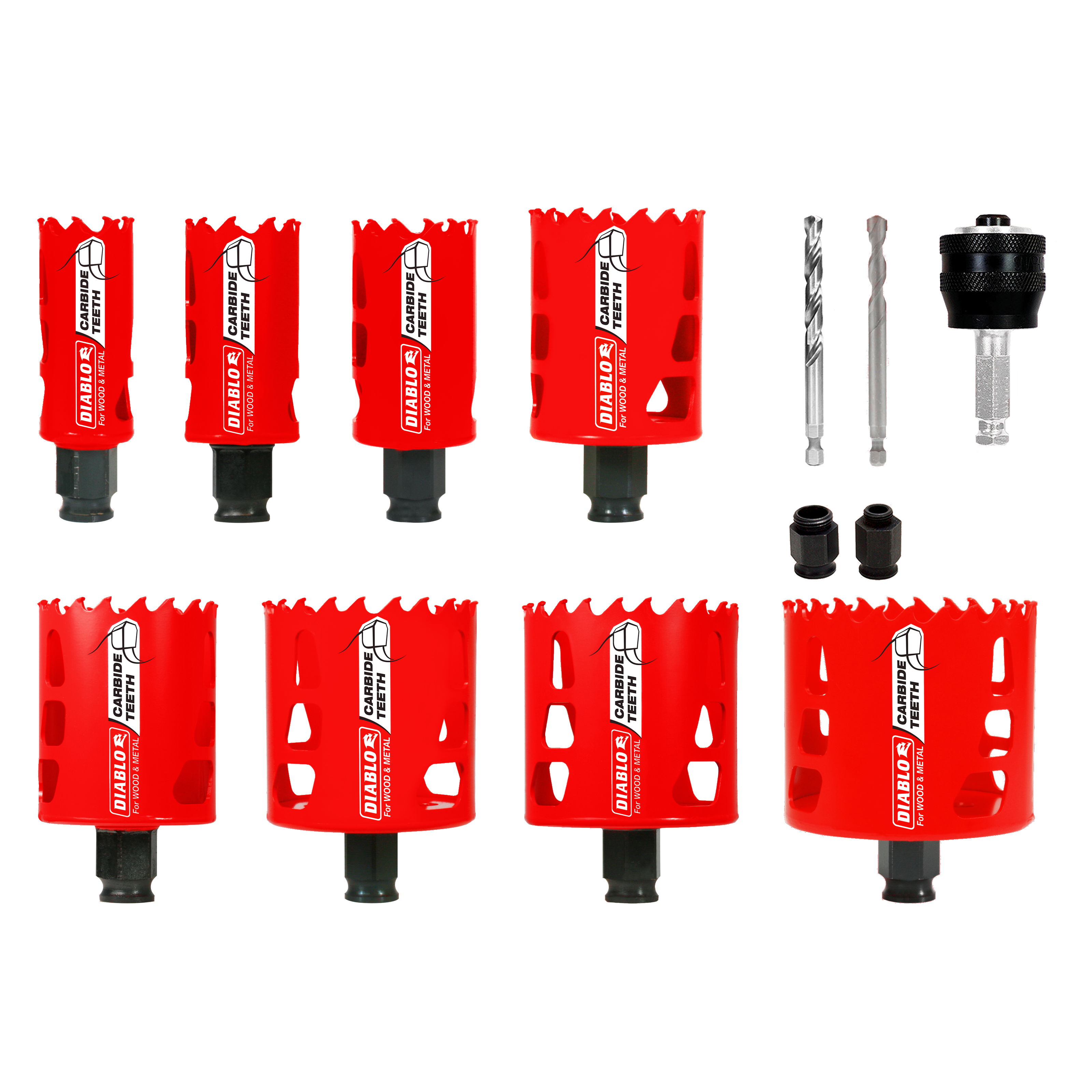 - Eight carbide teeth hole saws for superior cutting