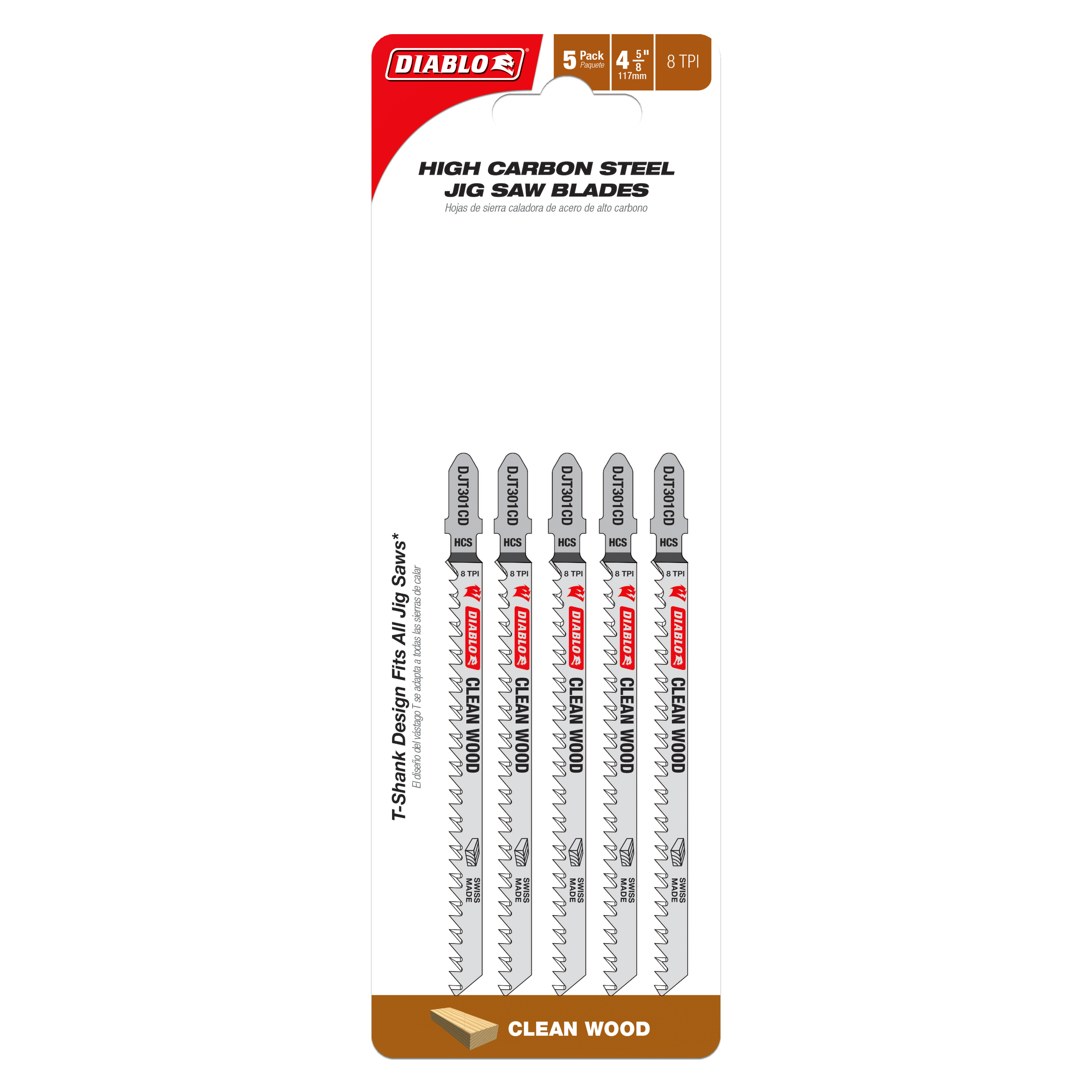 Diablo DJT301CD5 4-5/8" 8 TPI High Carbon Steel T-Shank Jig Saw Blades for Wood (5-Pack)