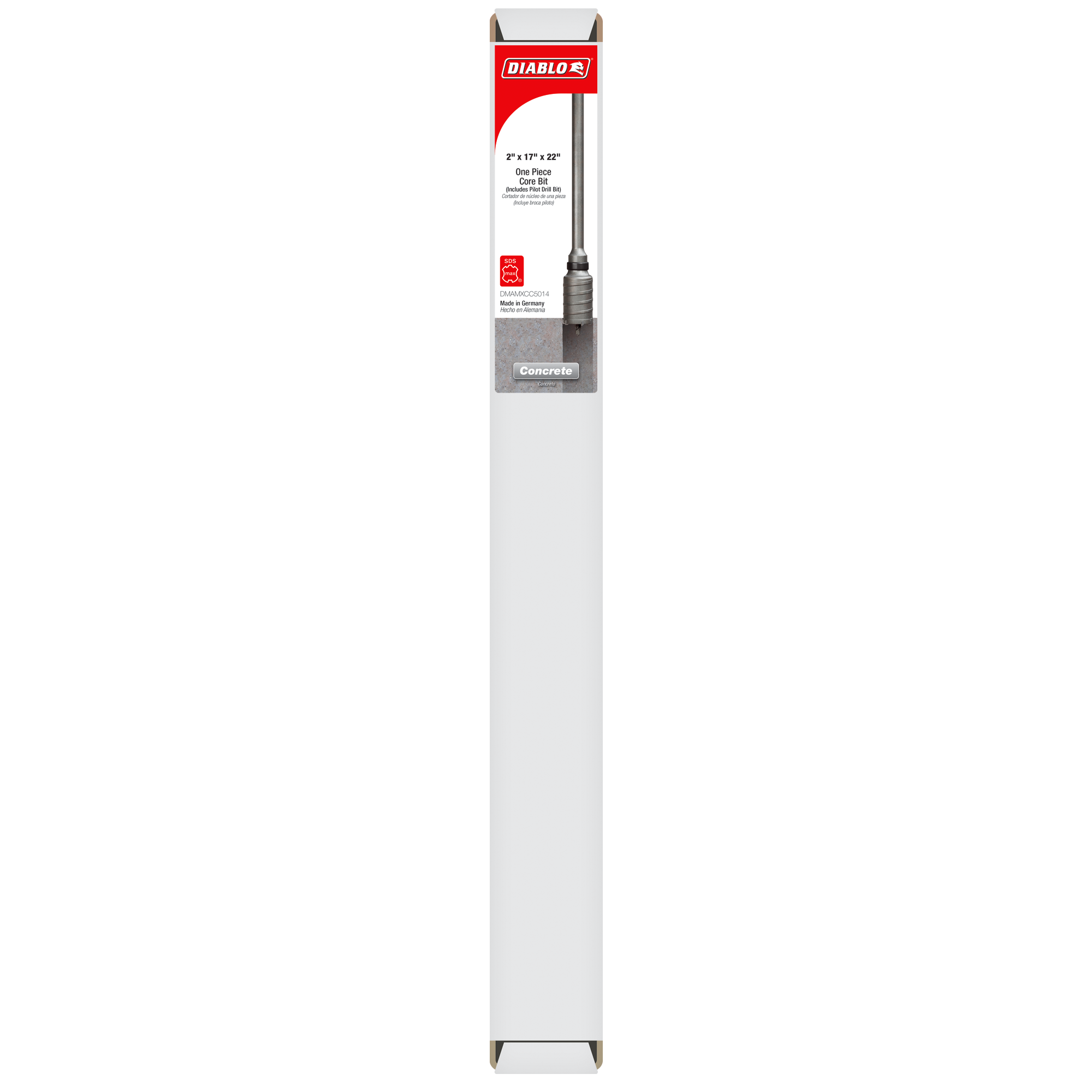 Experience unparalleled performance with the Diablo DMAMXCC5014 2" x 17" x 22" SDS-Max Carbide Tipped Core Bit. This exceptional core bit is engineered for those who demand the highest quality in concrete applications. Featuring a robust, all-in-one design, it provides superior strength that withstands the rigorous stress and impact of high-powered hammer drills.