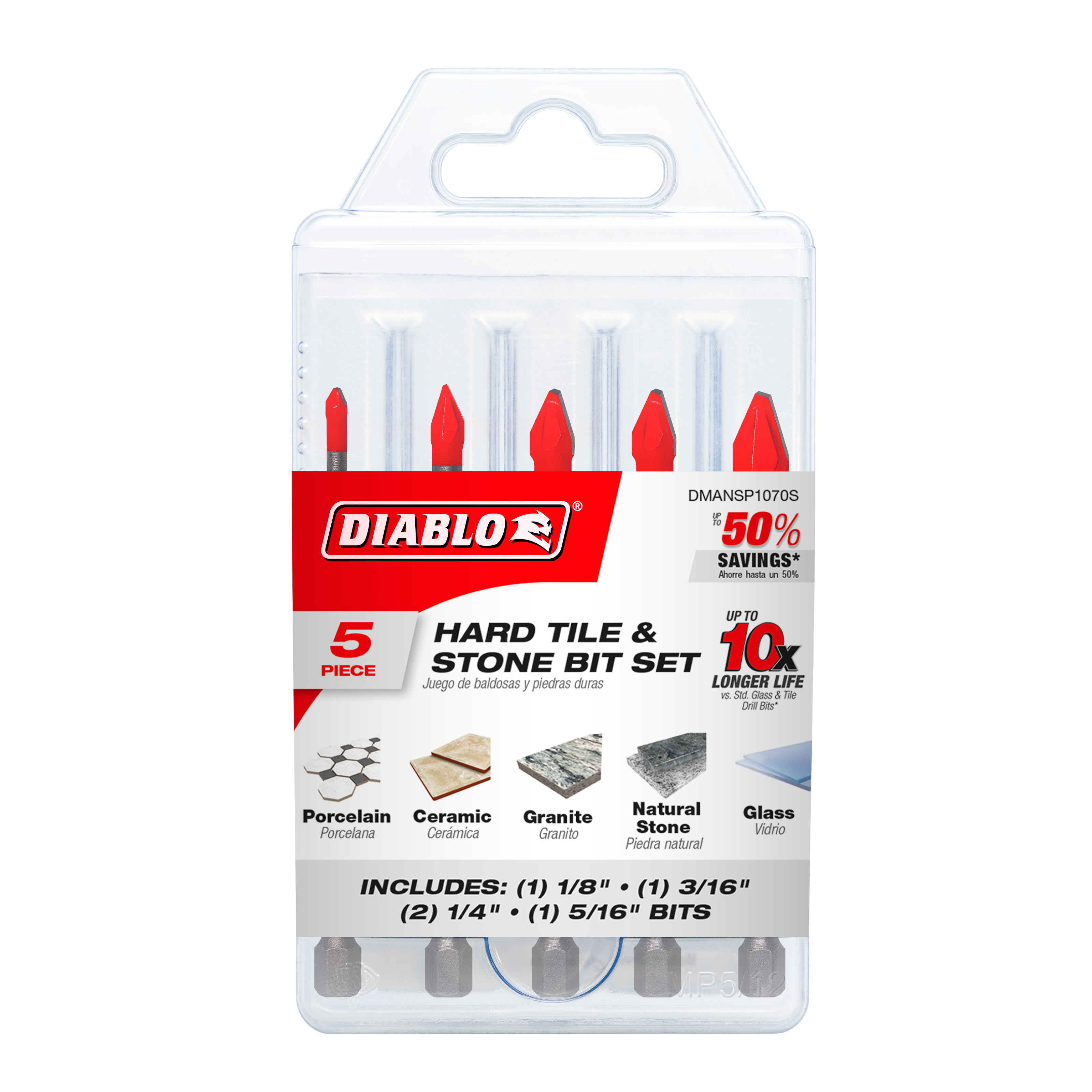 Discover the power and precision of the Diablo DMANSP1070S Diablo Hard Tile & Stone Carbide Tipped Drill Bit Set. This exceptional 5-piece set is expertly designed to tackle the toughest materials, including tile, stone, and glass, making your DIY projects easier and more efficient.
