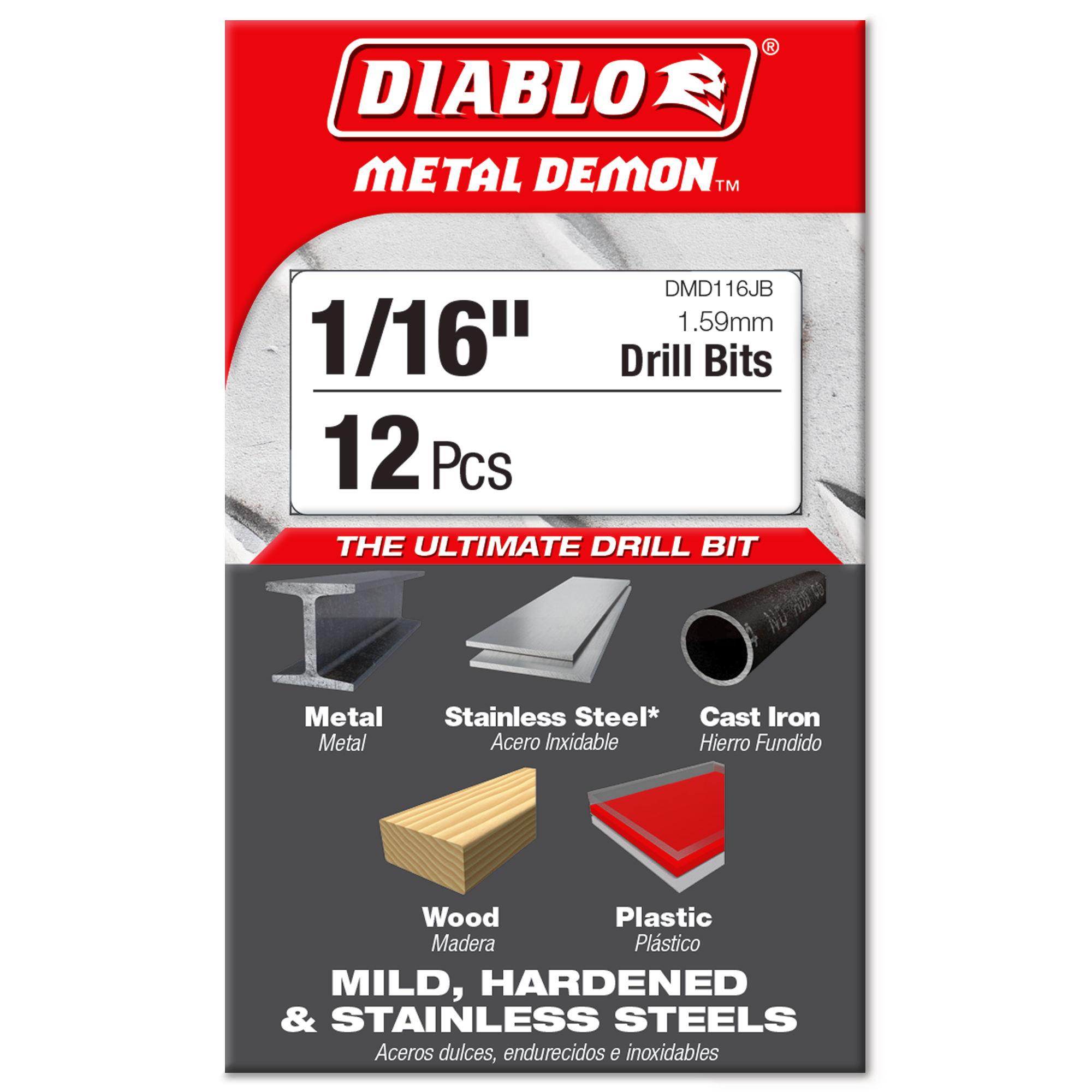 Diablo DMD116JB 1/16" Metal Demon™ Drill Bits for Mild, Hardened and Stainless Steels
