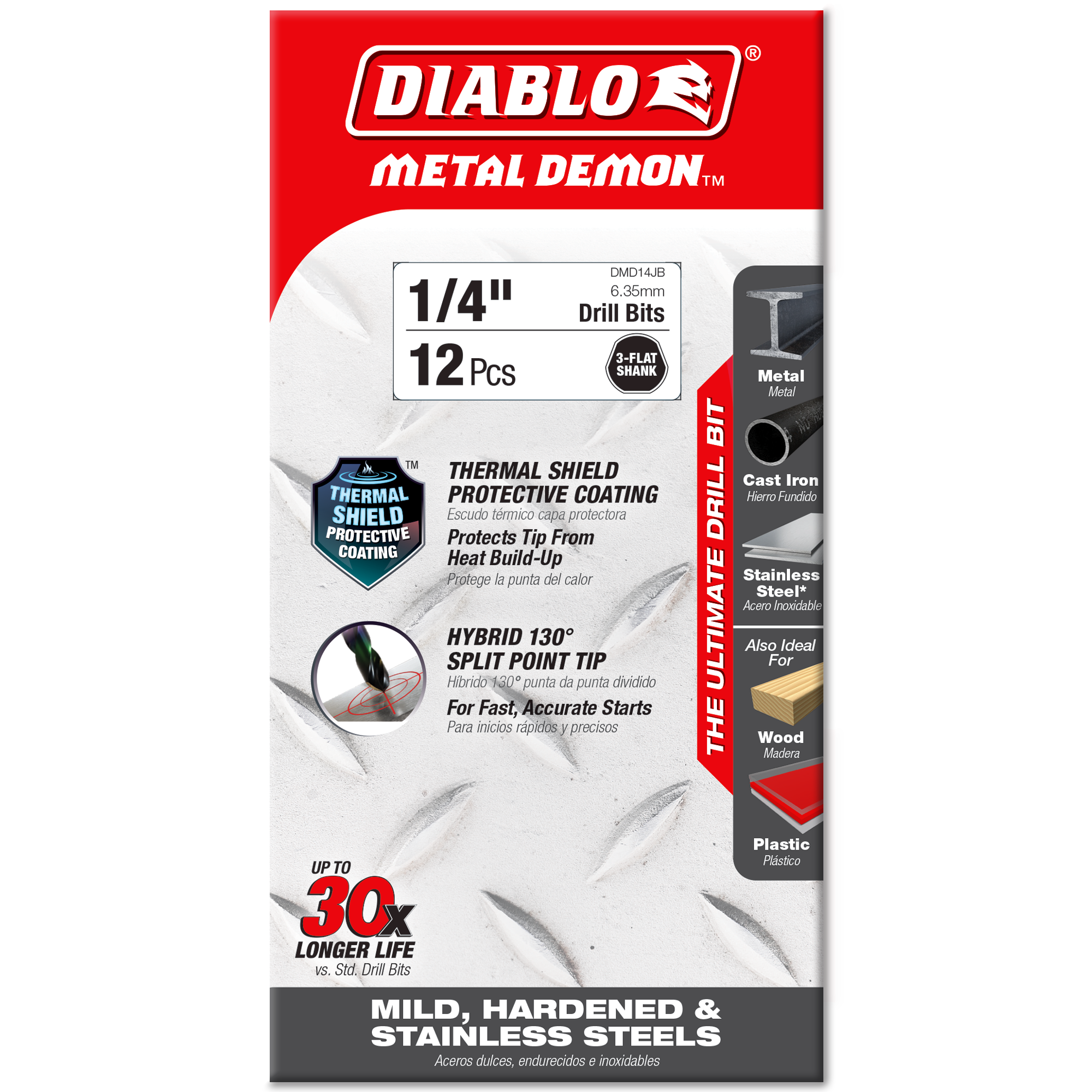 Diablo DMD14JB 1/4" Metal Demon™ Drill Bits for Mild, Hardened and Stainless Steels
