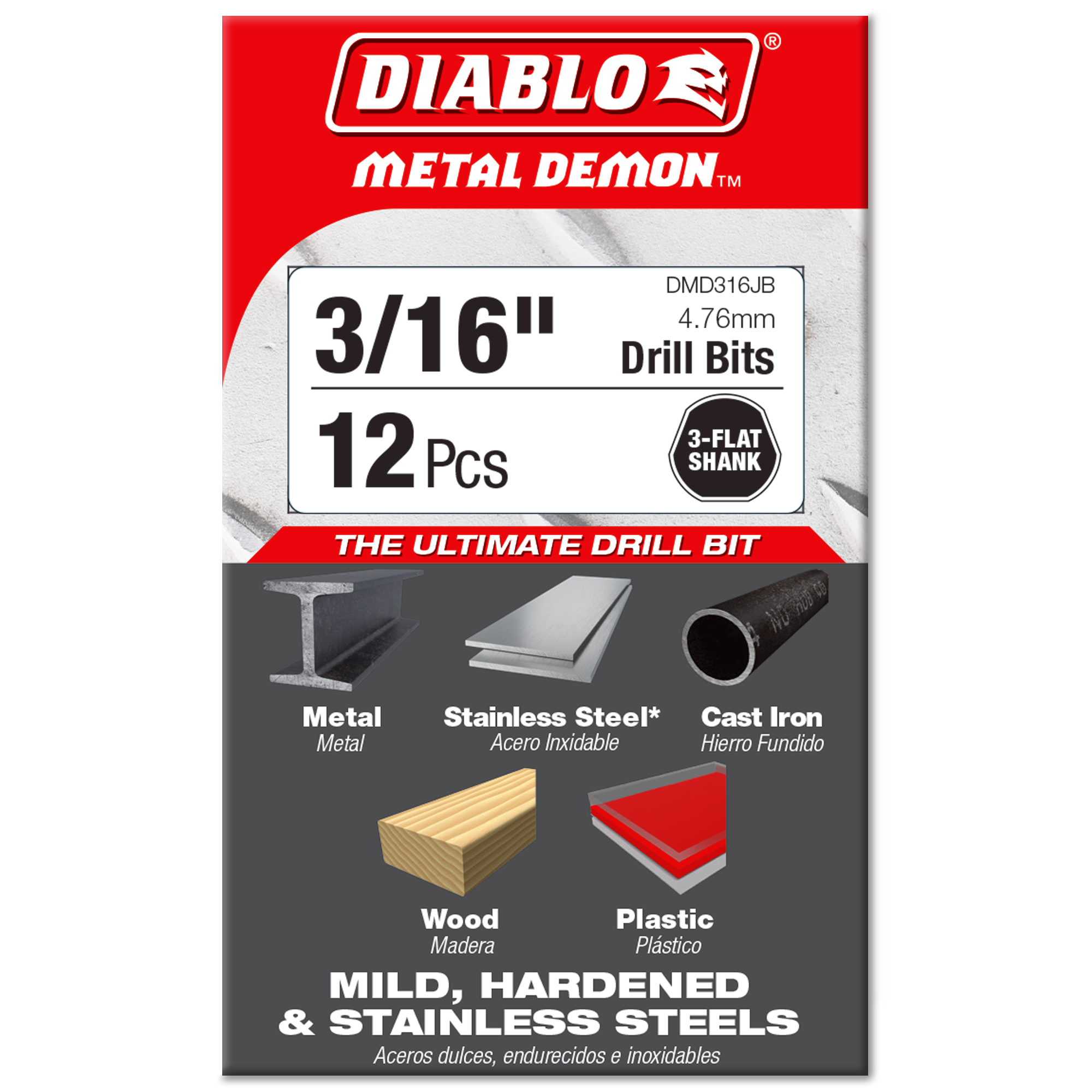 Diablo DMD316JB 3/16" Metal Demon™ Drill Bits for Mild, Hardened and Stainless Steels