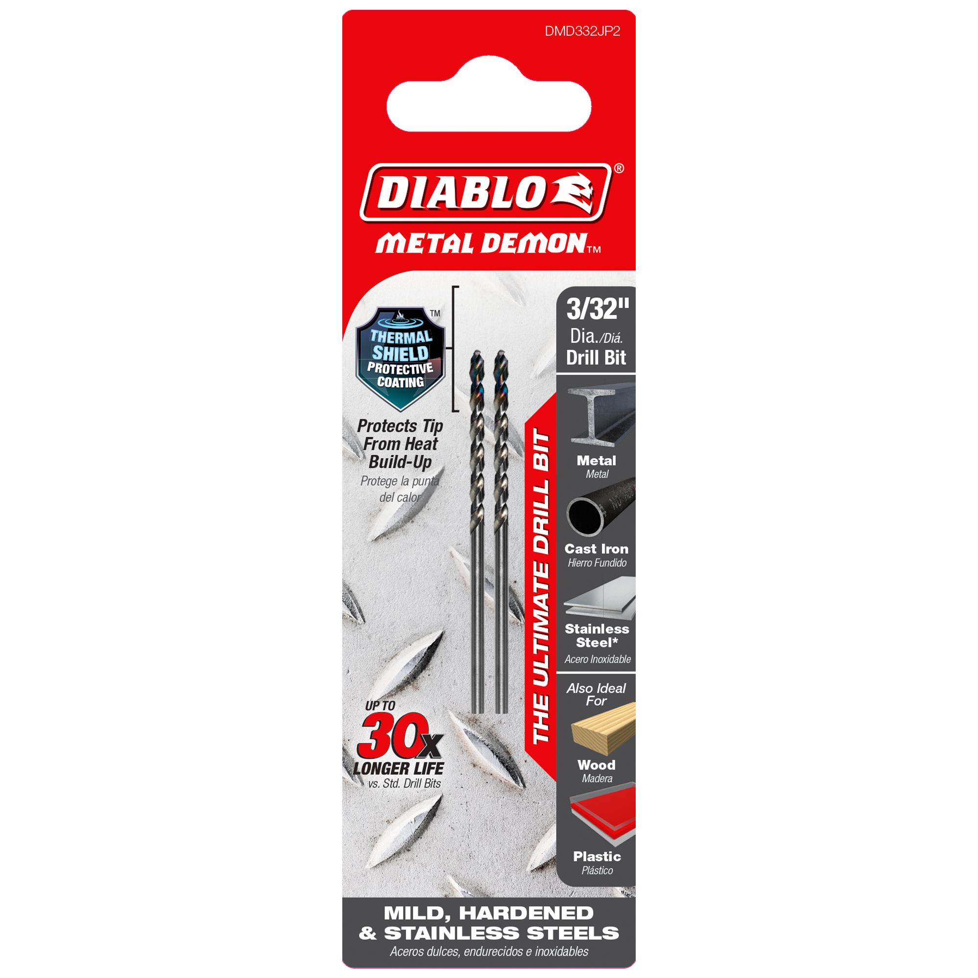 Diablo DMD332JP2 3/32" Metal Demon™ Drill Bits for Mild, Hardened and Stainless Steels (2-Pack)
