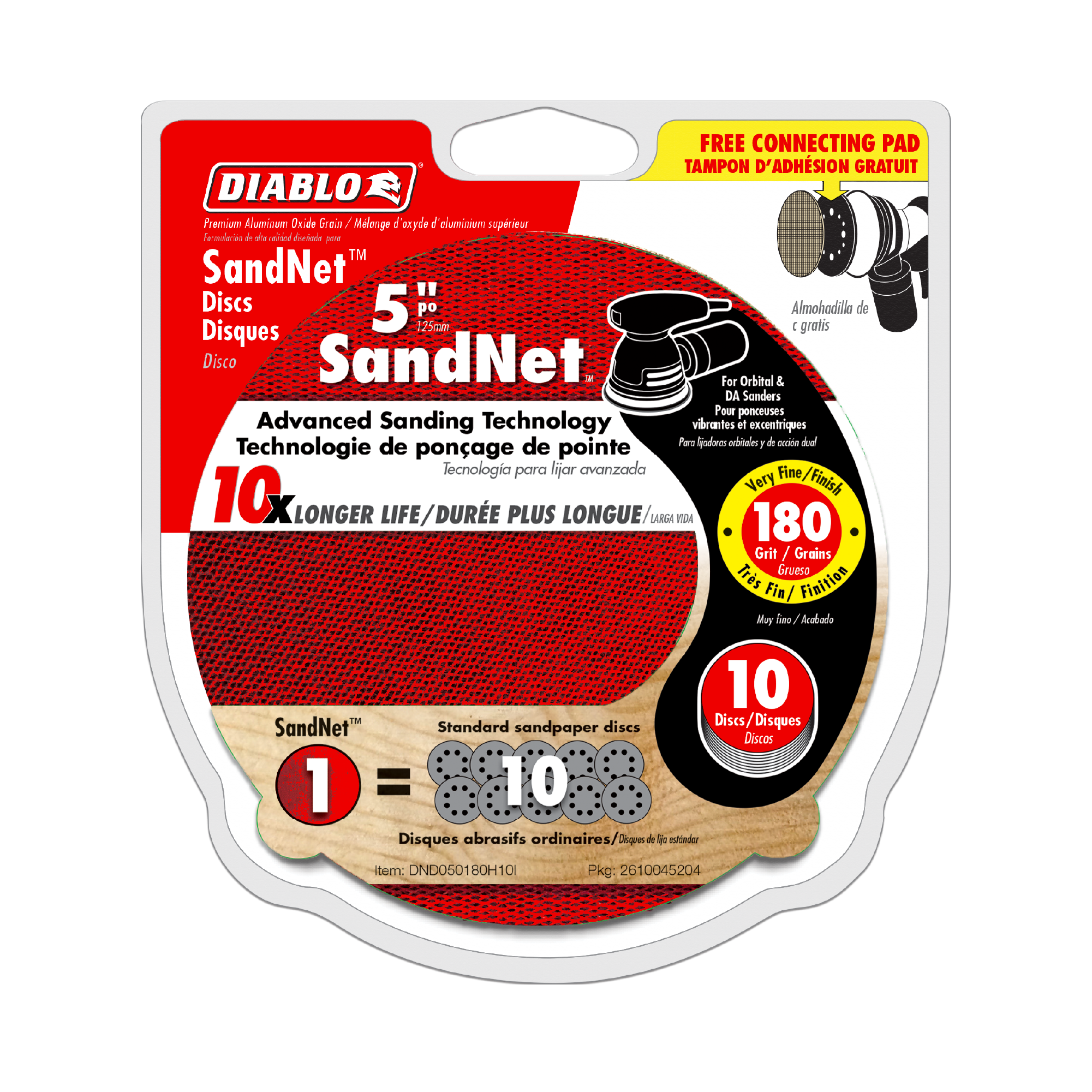 Diablo DND050180H10I 5" 180-Grit SandNET™ Reusable Sanding Discs with Connection Pad (10-Pack)