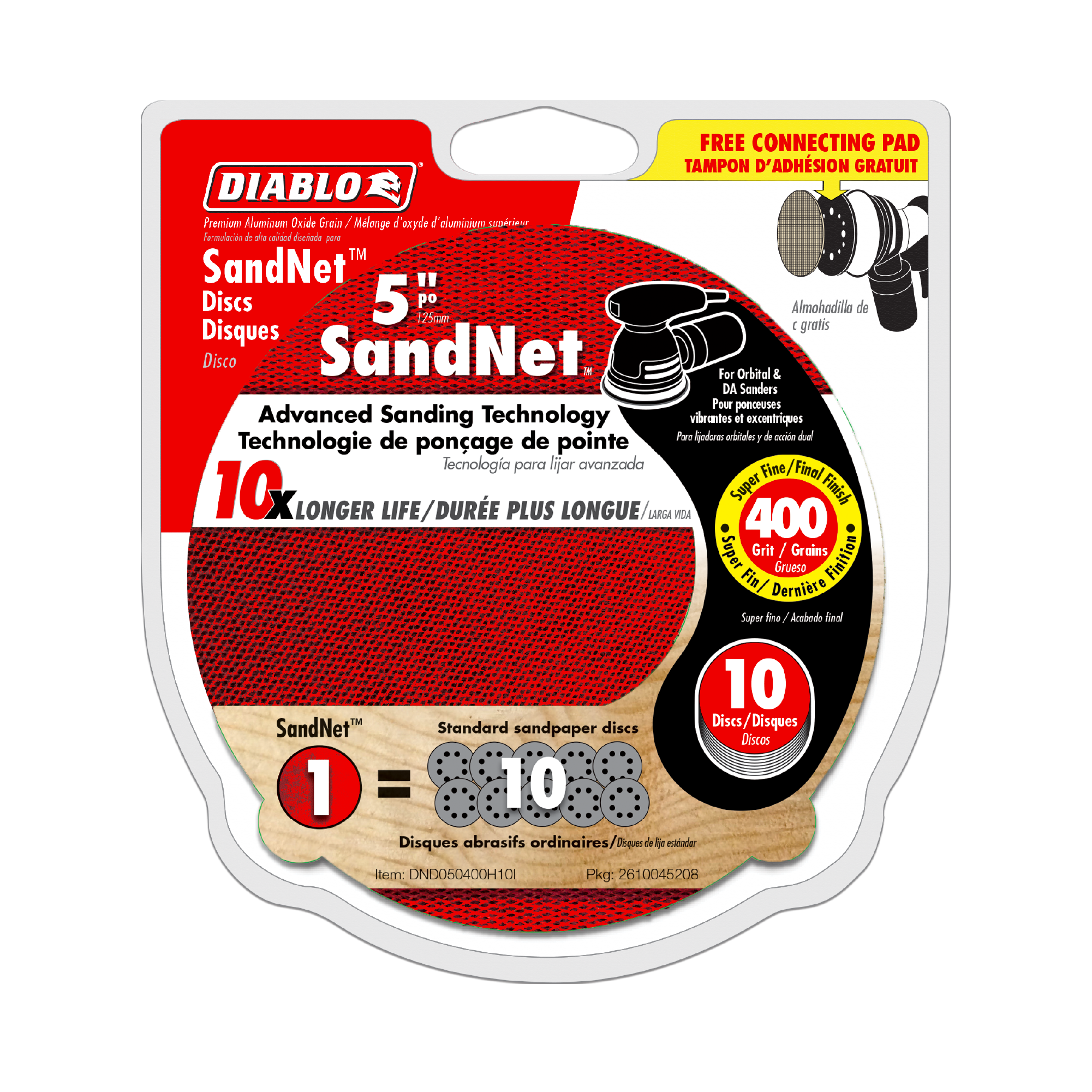 Experience the ultimate sanding solution with the Diablo DND050400H10I 5" 400-Grit SandNET™ Sanding Discs. Designed for both professionals and DIY enthusiasts, these advanced sanding discs feature innovative reusable sanding technology, ensuring you get up to 10 times longer life compared to standard sanding discs.