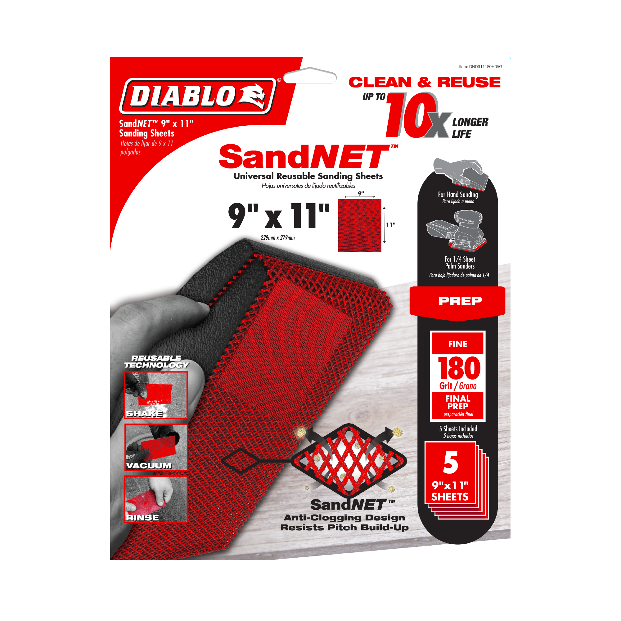 Diablo DND911180H05G 9" x 11" 180-Grit SandNET™ Reusable Sanding Sheets (5-Piece)