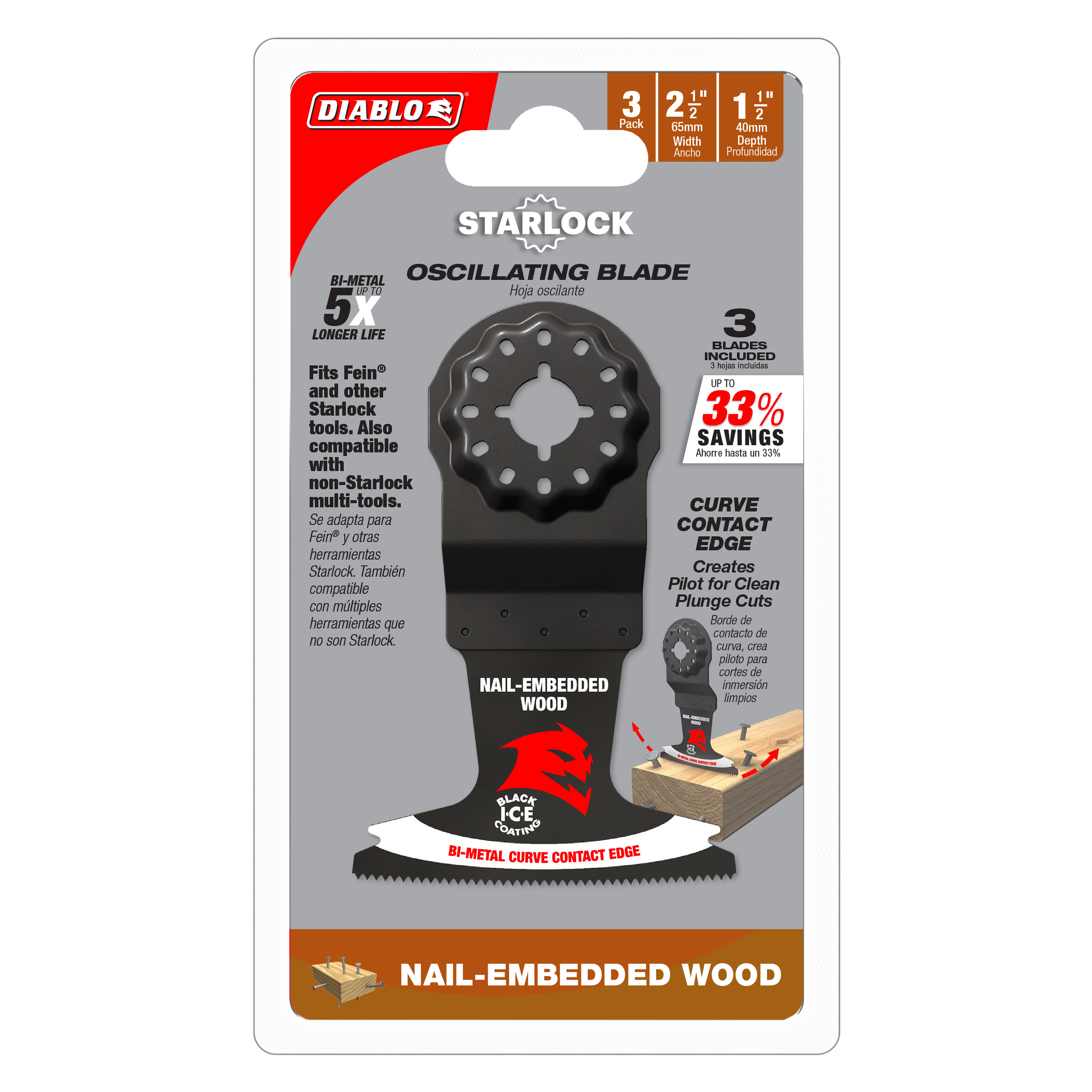 Diablo DOS250BW3 2-1/2" Demo Demon™ Starlock Bi-Metal Oscillating Blades for Nail-Embedded Wood (3-Pack)