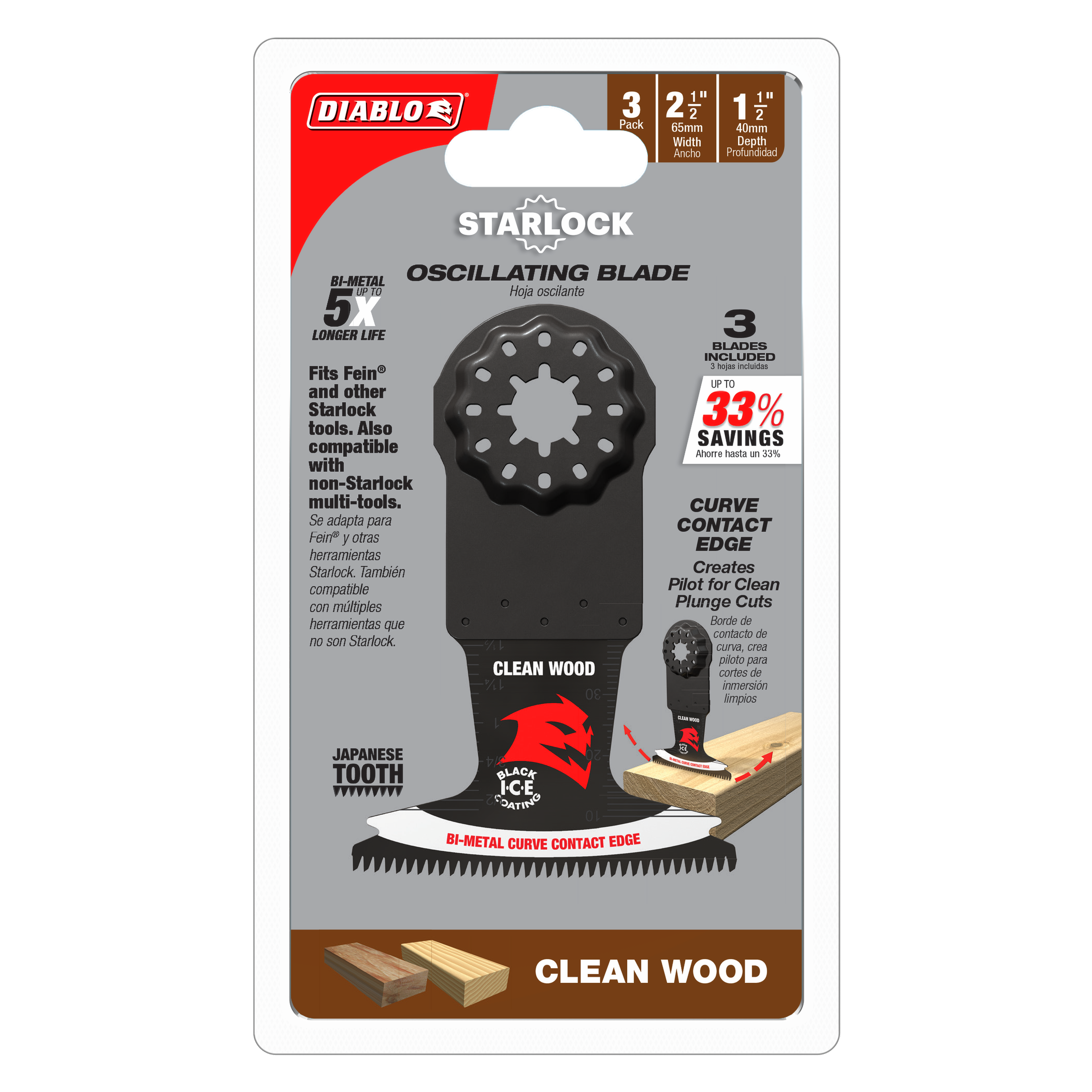 Diablo DOS250JBW3 2-1/2" Demo Demon™ Starlock Bi-Metal Oscillating Blades for Clean Wood (3-Pack)