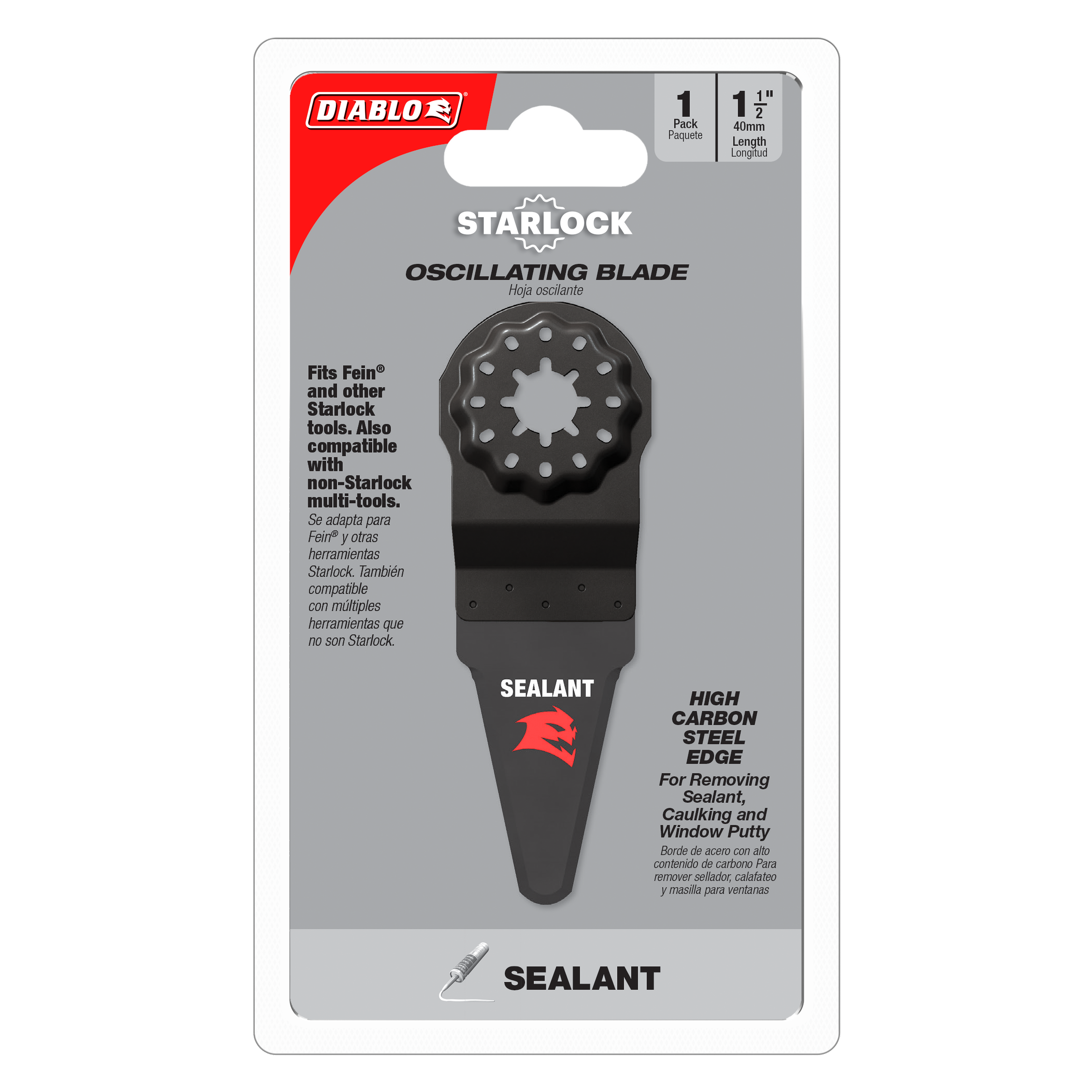 Experience effortless sealant removal with the Diablo DOSSEAL 1-1/2" Starlock High Carbon Steel Oscillating Blade. Engineered for precision and durability, this high-performance blade is specifically designed to tackle soft materials such as flexible joint sealer, window putty, and caulk with ease.