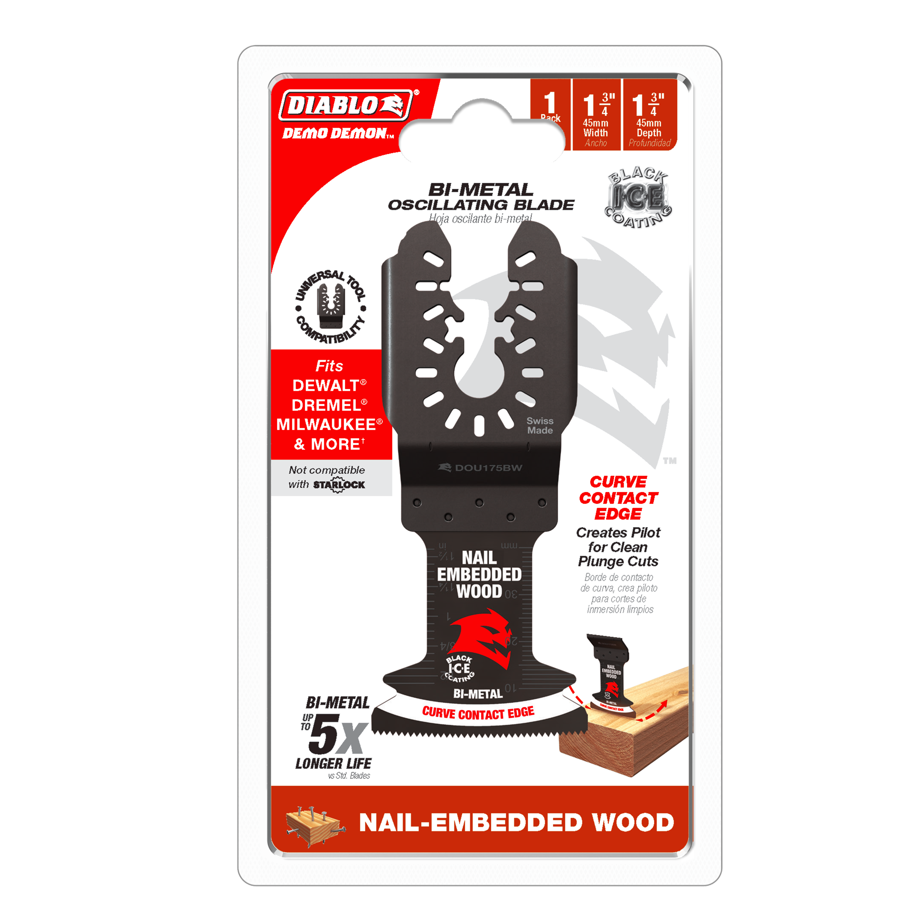 Introducing the Diablo DOU175BW 1-3/4" Diablo Demo Demon™ Bi-Metal Oscillating Blade, a revolutionary tool designed specifically for cutting through nail-embedded wood with unparalleled precision and durability. Whether you're a professional contractor or a DIY enthusiast, this oscillating blade is engineered to exceed your expectations.