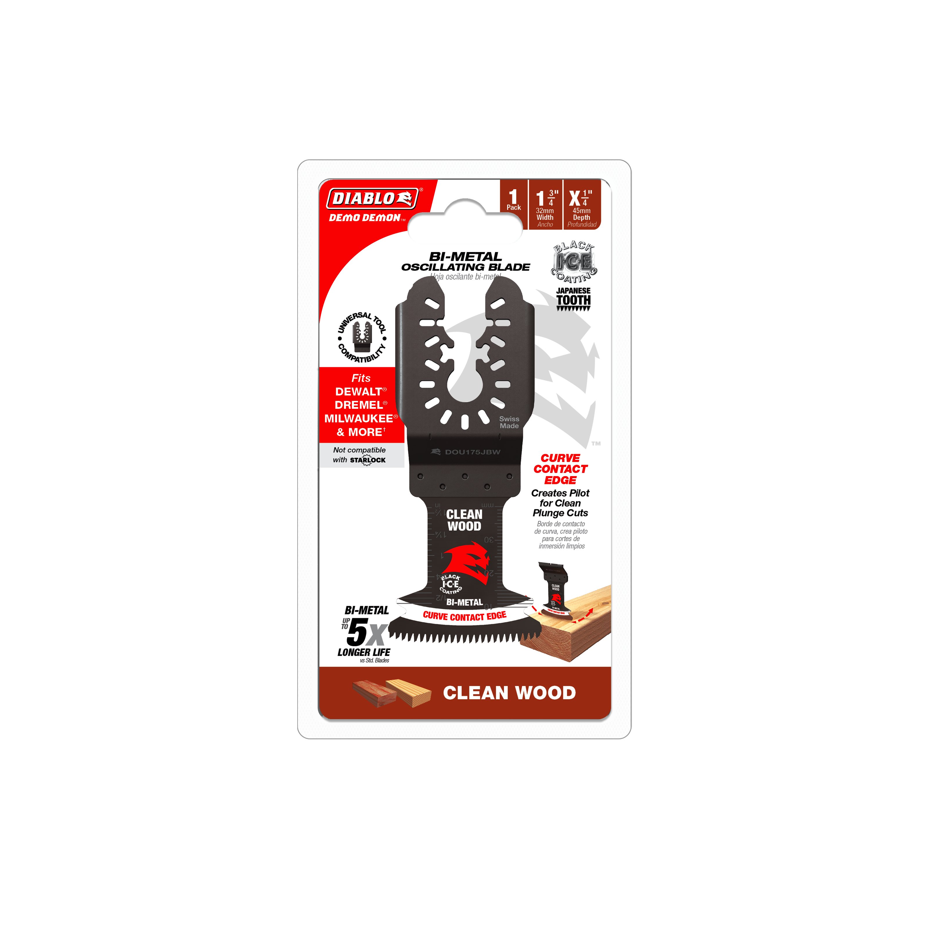 Experience superior cutting performance with the Diablo DOU175JBW 1-3/4" Demo Demon™ Bi-Metal Oscillating Blade, expertly designed for precision in clean wood applications. This high-quality blade is a game changer for professionals and DIY enthusiasts alike, delivering an impressive up to 5X longer life than standard blades.