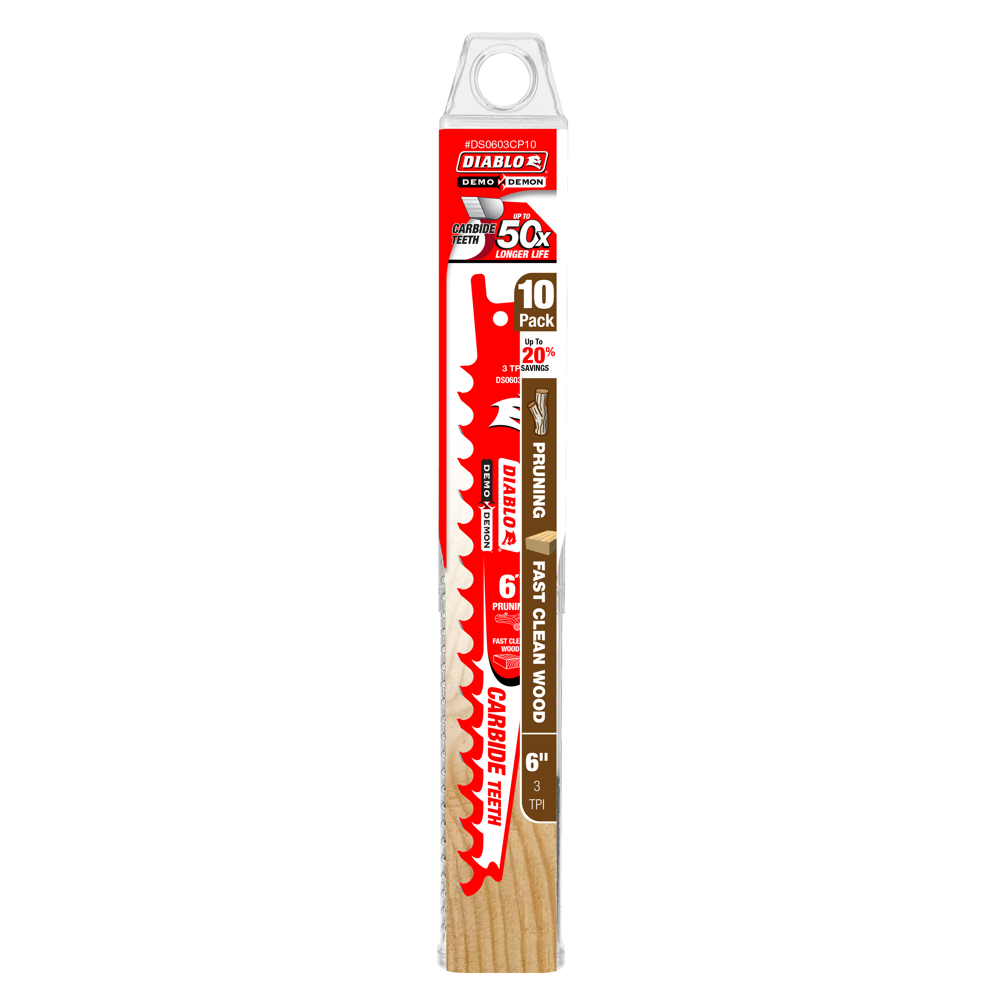 Diablo DS0603CP10 6" 3TPI Demo Demon™ Carbide Tipped Reciprocating Saw Blades for Pruning and Clean Wood (10-Pack)