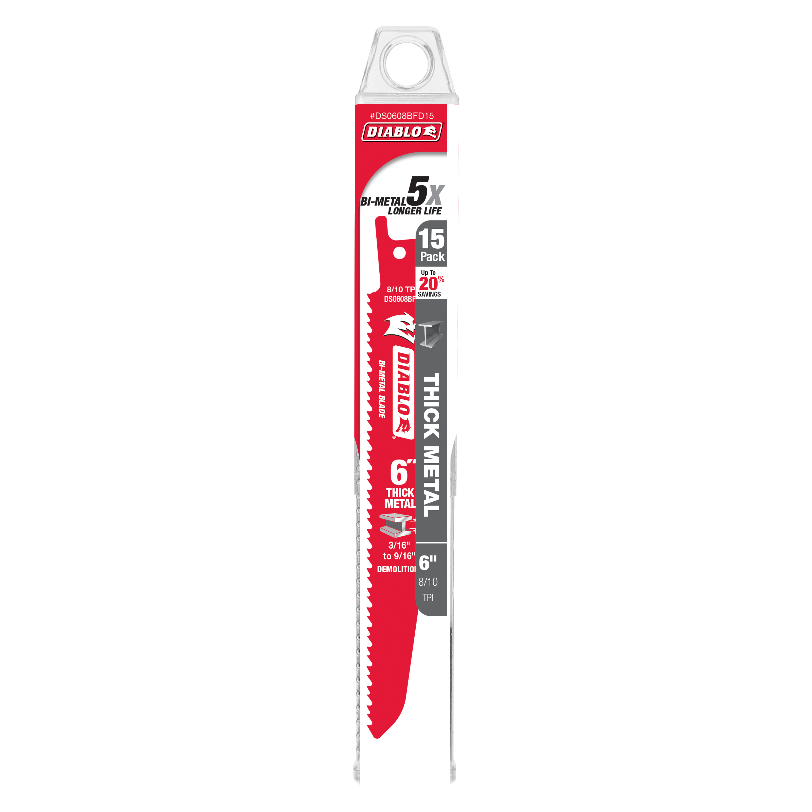 Diablo DS0608BFD15 6" Bi-Metal Reciprocating Saw Blade for Thick Metal/Demolition (3/16" to 9/16") (15-Pack)