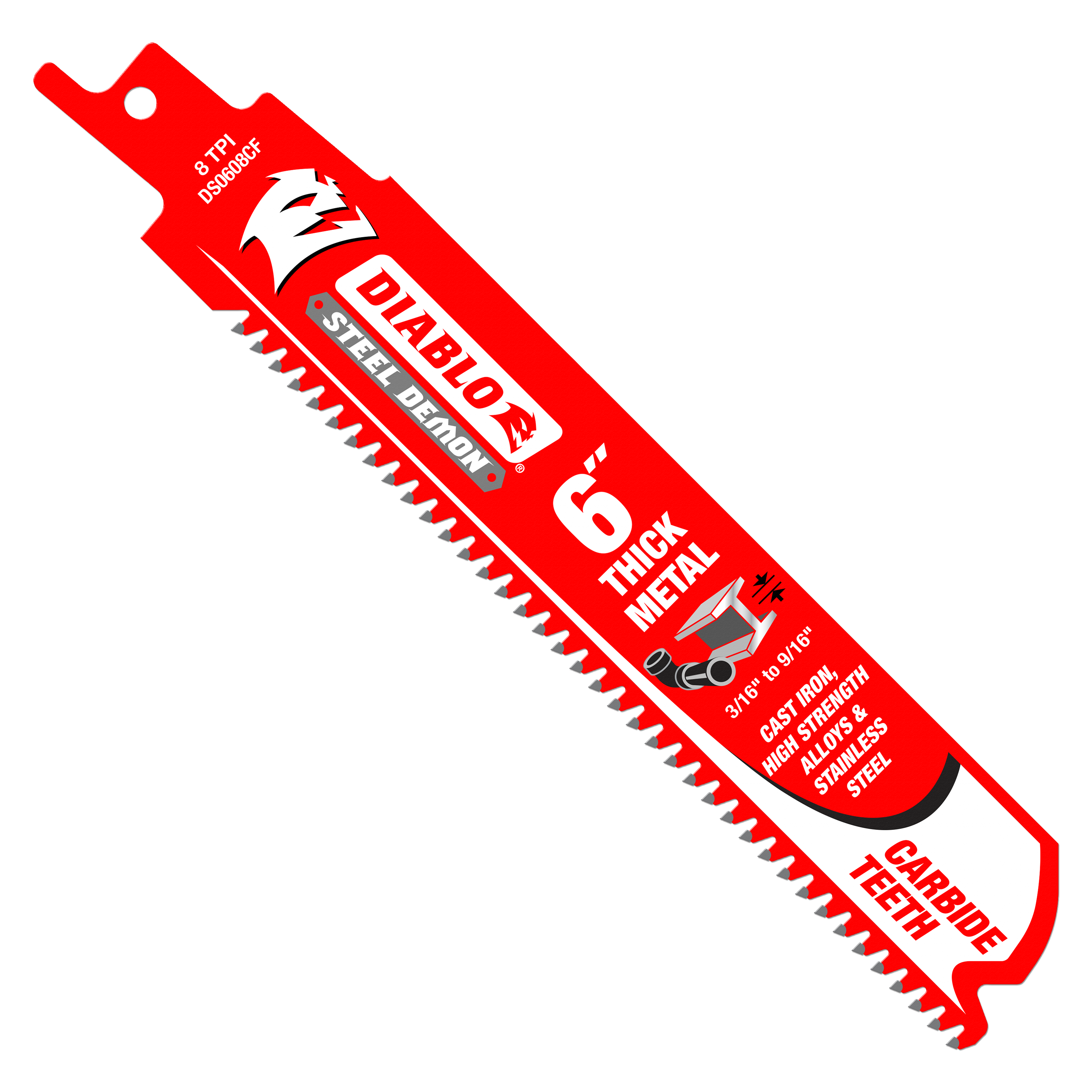 Introducing the Diablo DS0608CF10 6" 8TPI Steel Demon™ Carbide Teeth Reciprocating Saw Blades – the ultimate solution for tackling thick metal cutting with ease and precision. Designed specifically for extreme metal applications, these innovative blades are ideal for high-strength alloys, stainless steel, and cast iron.