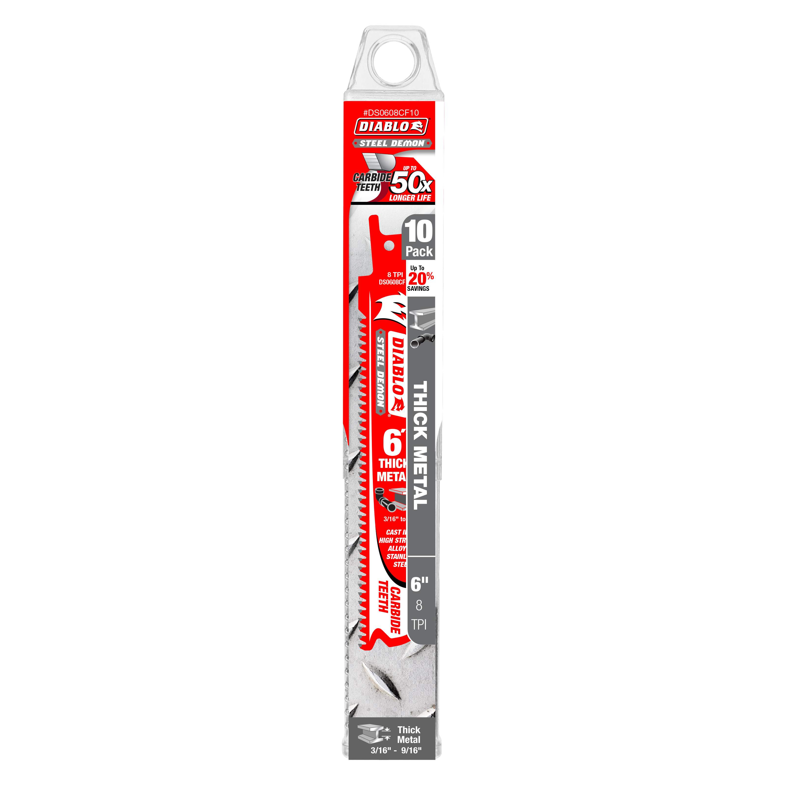 Diablo DS0608CF10 6" 8TPI Steel Demon™ Carbide Teeth Reciprocating Saw Blades for Thick Metal (10-Pack)