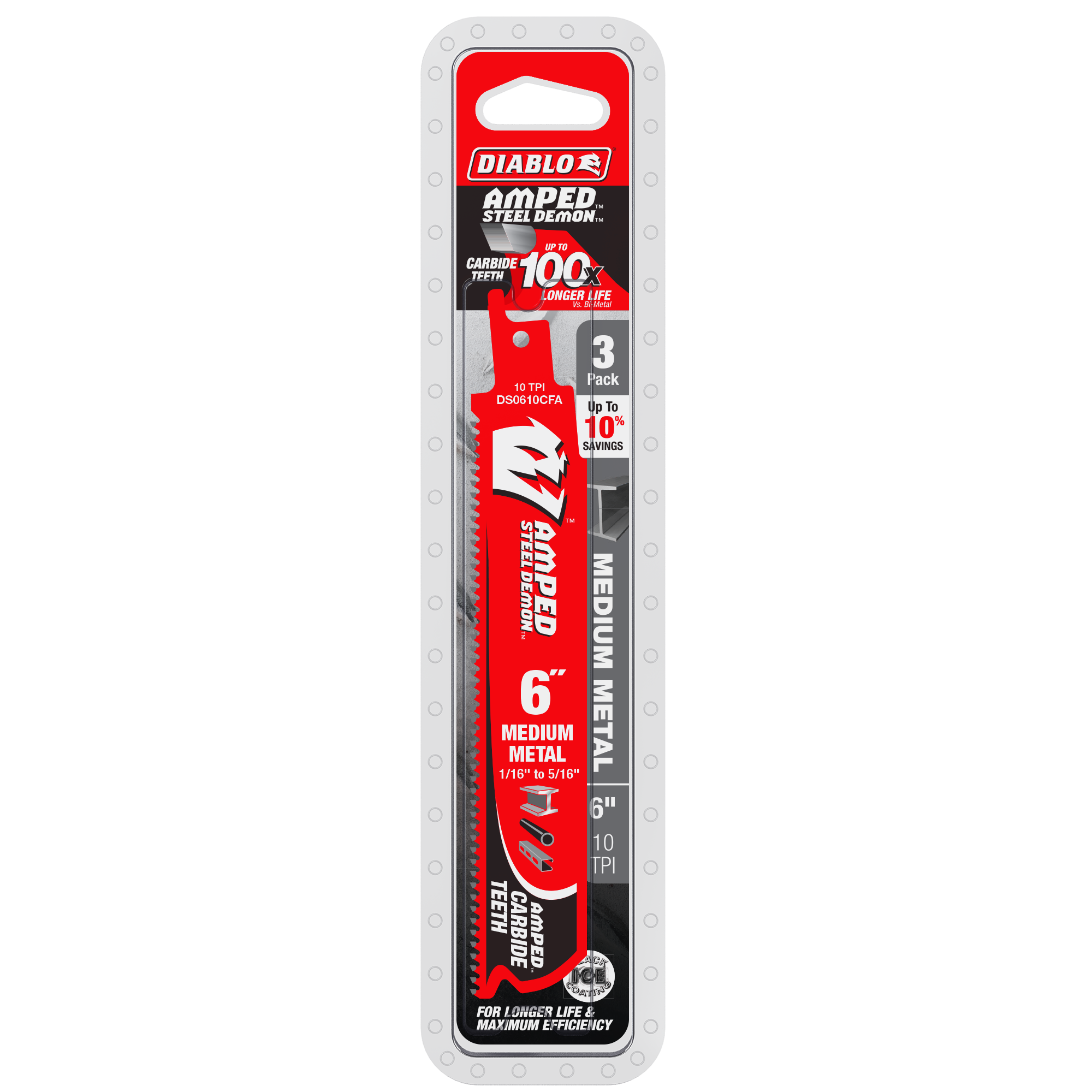 Diablo DS0610CFA3 6" 10TPI AMPED™ Steel Demon™ Carbide Teeth Reciprocating Saw Blade for Medium Metal (3-Pack)