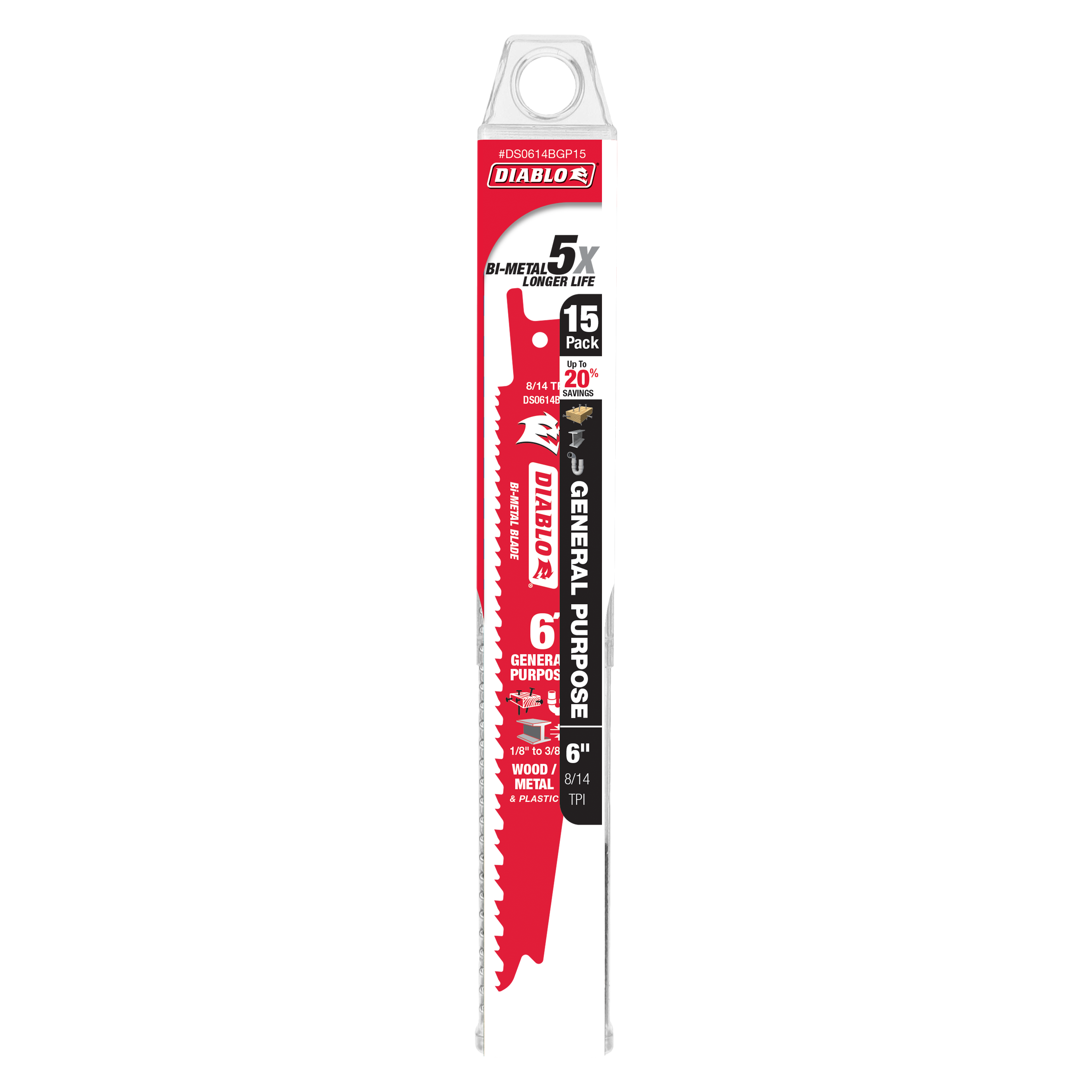 Diablo DS0614BGP15 6" Bi-Metal Reciprocating Saw Blade for Nail-Embedded Wood, Metal, and Plastic (15-Pack)