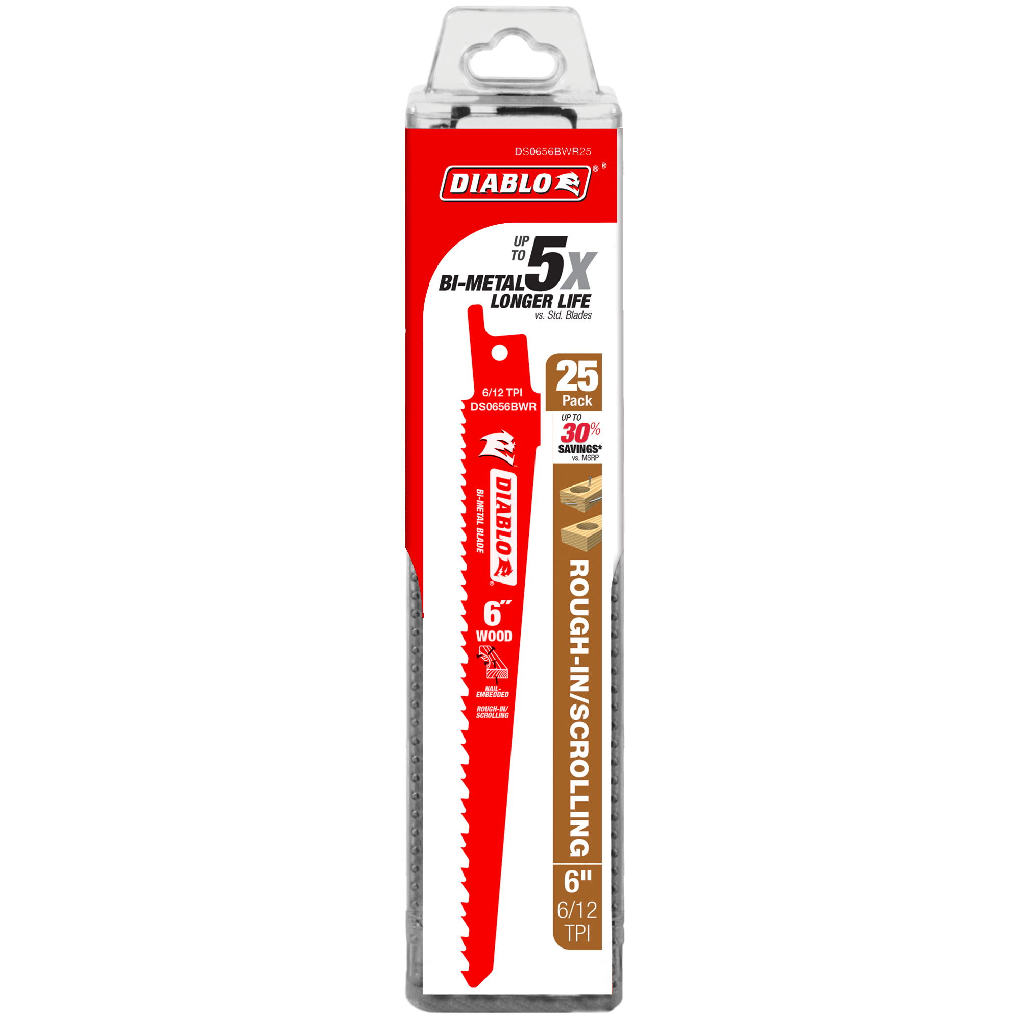 Diablo DS0656BWR25 6” 6/12TPI Bi-Metal Reciprocating Saw Blade for Rough-In/Scrolling (25-Pack)