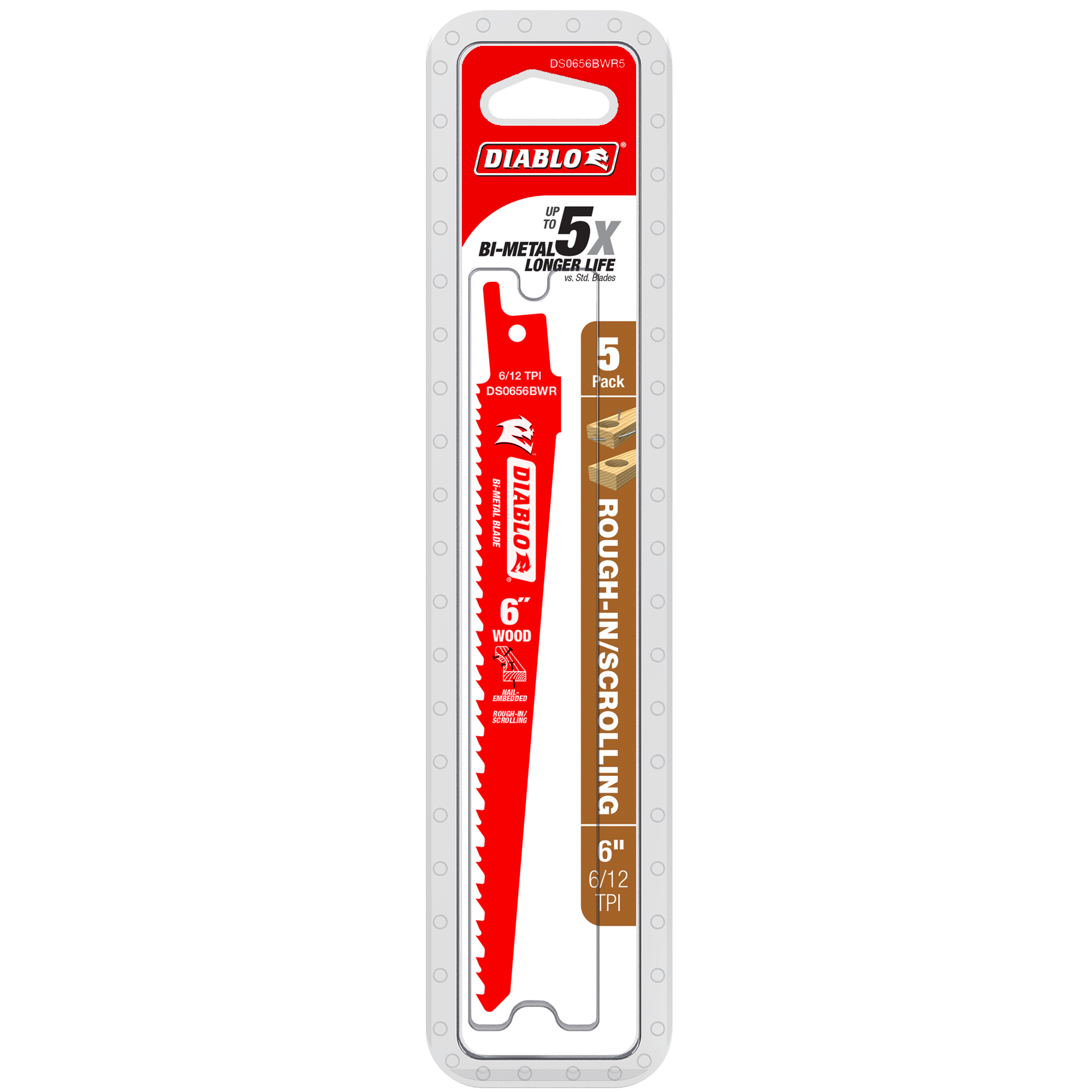 Diablo DS0656BWR5 6” 6/12TPI Bi-Metal Reciprocating Saw Blade for Rough-In/Scrolling (5-Pack)