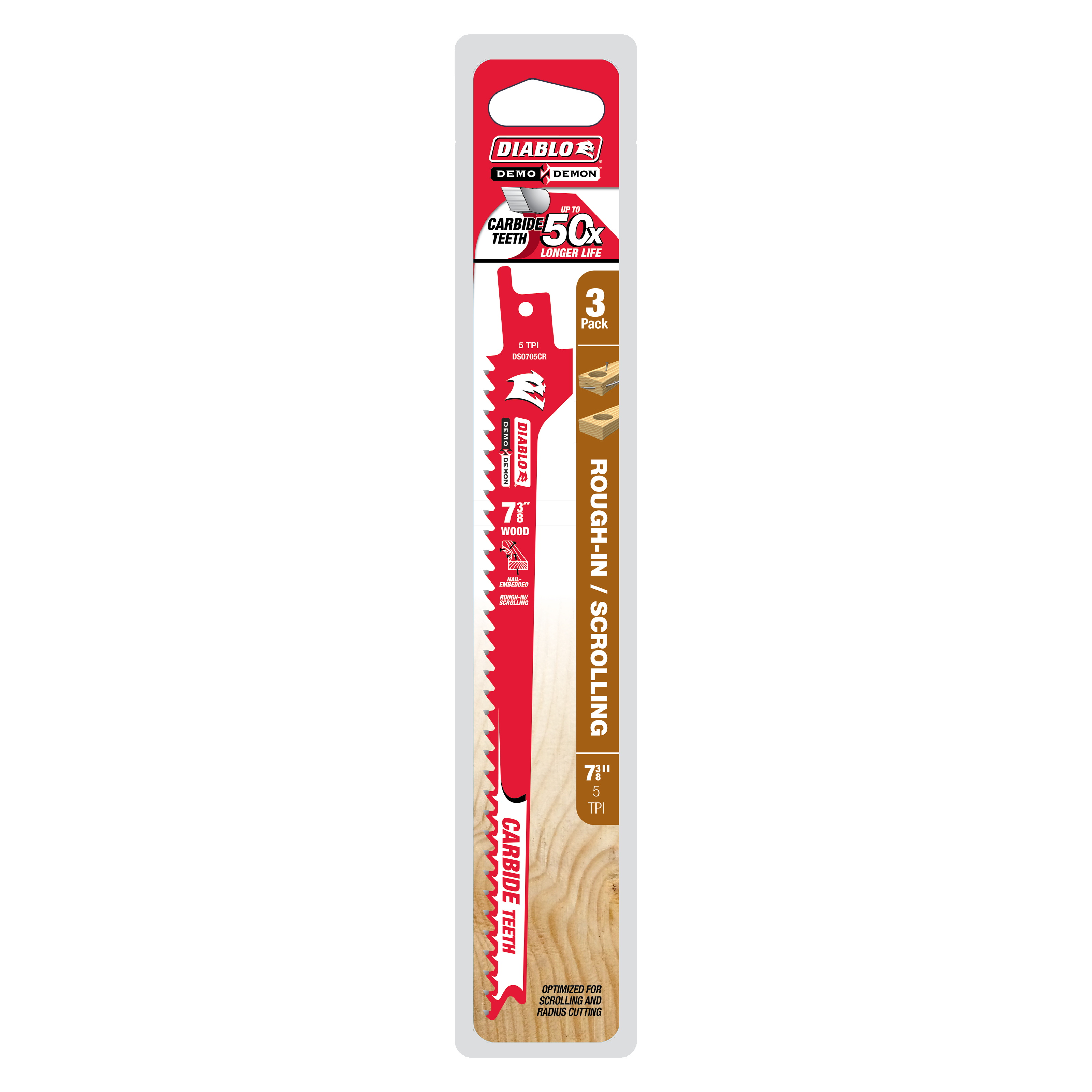 Diablo DS0705CWR3 7-3/8" 5TPI Demo Demon™ Carbide Teeth Reciprocating Saw Blades for Rough-In/Scrolling